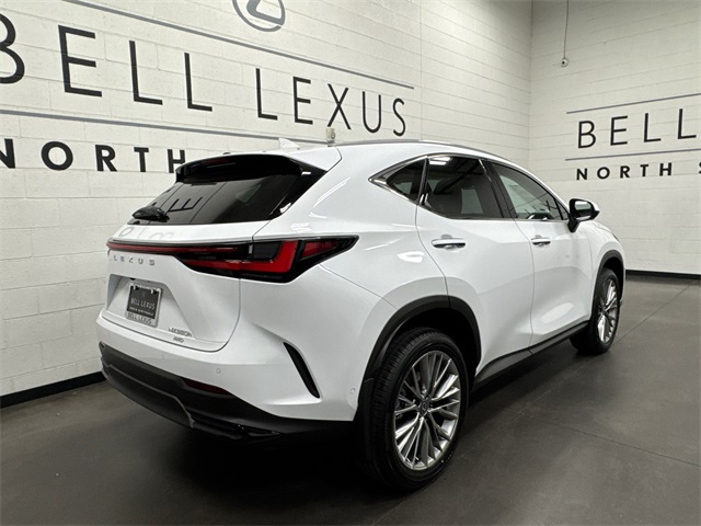 Arizona's Original and Largest Lexus Dealer, since 1989! ELITE OF LEXUS AWARD WINNER... for two decades. Bell Lexus is also the #1 Lexus dealer in the USA for Service Customer Satisfaction 6 out of the last 8 years. This Lexus NX is equipped with the following features: Accessory Package (2T) (All-Weather Cargo Mat and All-Weather Floor Liners), Accessory Package (P5) (Rear Puddle Lamp and Side Puddle Lamps w/Lexus Logo), Cold Area Package (Heated Steering Wheel), Luxury Package, 2.5L I4 DOHC 16V, 10 Speakers, 2,000 lb Towing Capacity, 20" Wheels, 4-Wheel Disc Brakes, ABS brakes, Advanced Park w/Remote Park, Air Conditioning, Alloy wheels, AM/FM radio: SiriusXM, Auto High-beam Headlights, Auto tilt-away steering wheel, Auto-dimming door mirrors, Auto-dimming Rear-View mirror, Automatic temperature control, Brake assist, Bumpers: body-color, Cargo Net, Delay-off headlights, Digital Key & SmartAccess Key Card, Driver door bin, Driver vanity mirror, Dual front impact airbags, Dual front side impact airbags, Electronic Stability Control, Emergency communication system: Safety Connect (up to 10-year trial subscription included), Exterior Parking Camera Rear, Four wheel independent suspension, Front anti-roll bar, Front Bucket Seats, Front Center Armrest, Front Cross-Traffic Alert & Lane Change Assist, Front dual zone A/C, Front fog lights, Front reading lights, Fully automatic headlights, Garage door transmitter: HomeLink, Genuine wood door panel insert, Heads-Up Display, Heated & Ventilated Front Seats, Heated door mirrors, Heated front seats, Illuminated Door Sills w/Lexus Logo, Illuminated entry, Knee airbag, Leather Seat Trim, Leather Shift Knob, Leather steering wheel, Lexus Interface w/14" Touchscreen Display, Low tire pressure warning, Mark Levinson 17-Speaker PurePlay Surround Sound, Memory seat, Mudguards, Navigation system: Drive Connect Cloud Navigation (3-year trial subscription included), Occupant sensing airbag, Outside temperature display, Overhead airbag, Overhead console, Panic alarm, Panorama Glass Roof, Panoramic View Monitor, Passenger door bin, Passenger vanity mirror, Power door mirrors, Power driver seat, Power Liftgate, Power moonroof, Power passenger seat, Power steering, Power windows, Premium Paint (PJ), Radio data system, Radio: 10-Speaker Lexus Premium Sound System, Rain sensing wipers, Rear anti-roll bar, Rear reading lights, Rear seat center armrest, Rear window defroster, Rear window wiper, Remote keyless entry, Security system, Speed control, Speed-sensing steering, Speed-Sensitive Wipers, Split folding rear seat, Spoiler, Steering wheel memory, Steering wheel mounted audio controls, Tachometer, Telescoping steering wheel, Tilt steering wheel, Traction control, Trip computer, Turn signal indicator mirrors, Variably intermittent wipers, Ventilated front seats, Wheels: 18" 15-Spoke Alloy, Wheels: 20" 20-Spoke Alloy, Wireless Apple CarPlay/Wireless Android Auto, and Wireless Phone Charger.