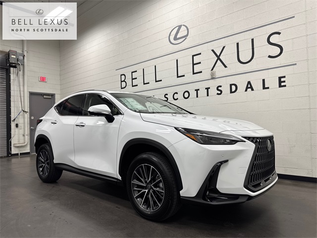 Arizona's Original and Largest Lexus Dealer, since 1989! ELITE OF LEXUS AWARD WINNER... for two decades. Bell Lexus is also the #1 Lexus dealer in the USA for Service Customer Satisfaction 6 out of the last 8 years. This Lexus NX is equipped with the following features: 2.5L I4 DOHC 16V, 10 Speakers, 2,000 Lb Towing Capacity, 20" Wheels, 4-Wheel Disc Brakes, ABS brakes, Air Conditioning, Alloy wheels, AM/FM radio: SiriusXM, Auto High-beam Headlights, Auto tilt-away steering wheel, Auto-dimming door mirrors, Auto-dimming Rear-View mirror, Automatic temperature control, Brake assist, Bumpers: body-color, Cargo Net, Delay-off headlights, Digital Key and SmartAccess Card Key, Door Edge Film by 3M, Driver door bin, Driver vanity mirror, Dual front impact airbags, Dual front side impact airbags, Electronic Stability Control, Emergency communication system: Safety Connect (up to 10-year trial subscription included), Exterior Parking Camera Rear, Four wheel independent suspension, Front anti-roll bar, Front Bucket Seats, Front Center Armrest, Front Cross-Traffic Alert and Lane Change Assist, Front dual zone A/C, Front fog lights, Front reading lights, Fully automatic headlights, Garage door transmitter: HomeLink, Genuine wood door panel insert, Heads-Up Display, Heated and Ventilated Front Seats, Heated door mirrors, Heated front seats, Heated steering wheel, Illuminated Door Sills with Lexus Logo, Illuminated entry, Knee airbag, Leather Seat Trim, Leather Shift Knob, Leather steering wheel, Lexus Interface with 14" Touchscreen Display, Low tire pressure warning, Memory seat, Navigation system: Drive Connect Cloud Navigation (3-year trial subscription included), Occupant sensing airbag, Outside temperature display, Overhead airbag, Overhead console, Panic alarm, Panoramic View Monitor, Passenger door bin, Passenger vanity mirror, Power door mirrors, Power driver seat, Power Liftgate, Power moonroof, Power passenger seat, Power steering, Power windows, Radio data system, Radio: 10-Speaker Lexus Premium Sound System, Rain sensing wipers, Rear anti-roll bar, Rear reading lights, Rear seat center armrest, Rear window defroster, Rear window wiper, Remote keyless entry, Security system, Speed control, Speed-sensing steering, Speed-Sensitive Wipers, Split folding rear seat, Spoiler, Steering wheel memory, Steering wheel mounted audio controls, Tachometer, Telescoping steering wheel, Tilt steering wheel, Traction control, Trip computer, Turn signal indicator mirrors, Variably intermittent wipers, Ventilated front seats, Wheels: 20" Split 5-Spoke Alloy, Wireless Apple CarPlay/Wireless Android Auto, and Wireless Phone Charger.