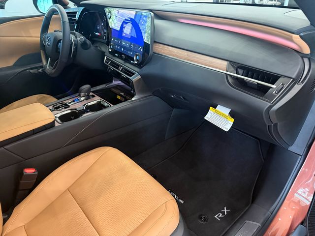Arizona's Original and Largest Lexus Dealer, since 1989! ELITE OF LEXUS AWARD WINNER... for two decades. Bell Lexus is also the #1 Lexus dealer in the USA for Service Customer Satisfaction 6 out of the last 8 years. This Lexus RX is equipped with the following features: Accessory Package, Convenience Package (Advanced Park, Front Cross-Traffic Alert, and Traffic Jam Assist), Premium+ Grade, Technology Package (10" Color Head-Up Display and Digital Rearview Mirror), Palomino W/Ash Bamboo Per Leather, 12 Speakers, 4-Wheel Disc Brakes, ABS brakes, Air Conditioning, All-Weather Cargo Mat, All-Weather Floor Liners, Alloy wheels, AM/FM radio: SiriusXM, Anti-whiplash front head restraints, Auto High-beam Headlights, Auto tilt-away steering wheel, Auto-dimming door mirrors, Auto-dimming Rear-View mirror, Automatic temperature control, Brake assist, Bumpers: body-color, Compass, Delay-off headlights, Driver door bin, Driver vanity mirror, Dual front impact airbags, Dual front side impact airbags, Electronic Stability Control, Emergency communication system: Safety Connect (5-year minimum), Exterior Parking Camera Rear, Four wheel independent suspension, Front and Rear Mud Guards, Front anti-roll bar, Front Bucket Seats, Front Center Armrest, Front dual zone A/C, Front fog lights, Front reading lights, Fully automatic headlights, Garage door transmitter: HomeLink, Genuine wood console insert, Heated and Ventilated Front Seats, Heated door mirrors, Heated front seats, Heated steering wheel, Illuminated entry, Leather Shift Knob, Leather steering wheel, Lexus Interface with 14" Touchscreen Display, Low tire pressure warning, Memory seat, Navigation System, Occupant sensing airbag, Outside temperature display, Overhead airbag, Overhead console, Panic alarm, Passenger door bin, Passenger vanity mirror, Perforated Leather Seat Trim, Power door mirrors, Power driver seat, Power Liftgate, Power passenger seat, Power Rear Door with Kick Sensor, Power steering, Power Tilt and Slide Moonroof, Power windows, Premium Paint, Radio data system, Radio: 12-Speaker Lexus Premium Sound System, Rain sensing wipers, Rear air conditioning, Rear anti-roll bar, Rear reading lights, Rear seat center armrest, Rear side impact airbag, Rear window defroster, Rear window wiper, Remote keyless entry, Security system, Speed control, Speed-sensing steering, Split folding rear seat, Spoiler, Steering wheel memory, Steering wheel mounted audio controls, Tachometer, Telescoping steering wheel, Tilt steering wheel, Traction control, Trip computer, Turn signal indicator mirrors, Variably intermittent wipers, Ventilated front seats, Wheels: 21" 20-Spoke Alloy, and Wireless Apple CarPlay/Wireless Android Auto.