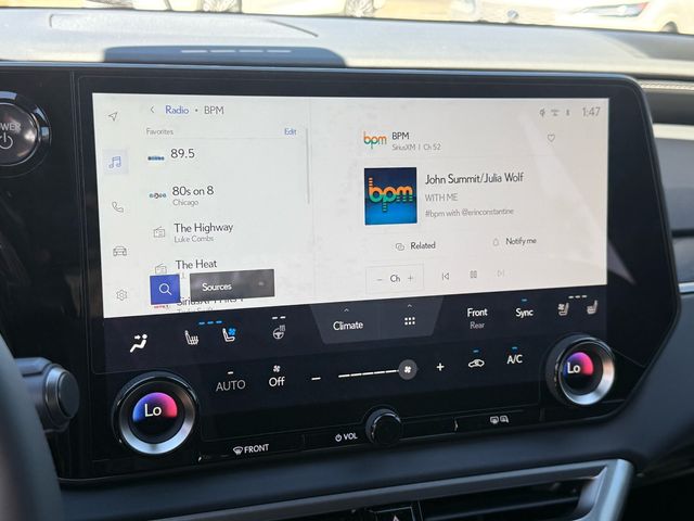 Arizona's Original and Largest Lexus Dealer, since 1989! ELITE OF LEXUS AWARD WINNER... for two decades. Bell Lexus is also the #1 Lexus dealer in the USA for Service Customer Satisfaction 6 out of the last 8 years. This Lexus RX is equipped with the following features: Convenience Package (Front Cross-Traffic Alert and Lane Change Assist), Premium+ Grade, Technology Package (10" Color Head-Up Display, Digital Key, and Digital Rearview Mirror), 2.5L I4 DOHC 16V, AWD, Blk Perforated Lth Leather, 12 Speakers, 120V/1,500-Watt AC Power Outlet, 4-Wheel Disc Brakes, ABS brakes, Air Conditioning, Alloy wheels, AM/FM radio: SiriusXM, Anti-whiplash front head restraints, Auto High-beam Headlights, Auto tilt-away steering wheel, Auto-dimming door mirrors, Auto-dimming Rear-View mirror, Automatic temperature control, Brake assist, Bumpers: body-color, Compass, Delay-off headlights, Driver door bin, Driver vanity mirror, Dual front impact airbags, Dual front side impact airbags, Electronic Stability Control, Emergency communication system: Safety Connect (5-year minimum), Exterior Parking Camera Rear, Four wheel independent suspension, Front anti-roll bar, Front Bucket Seats, Front Center Armrest, Front dual zone A/C, Front fog lights, Front reading lights, Fully automatic headlights, Garage door transmitter: HomeLink, Heated and Ventilated Front Seats, Heated door mirrors, Heated front seats, Heated steering wheel, Illuminated entry, Leather Shift Knob, Leather steering wheel, Lexus Interface with 14" Touchscreen Display, Lexus Multimedia Screen Protector, Low tire pressure warning, Memory seat, Navigation System, Occupant sensing airbag, Outside temperature display, Overhead airbag, Overhead console, Panic alarm, Panorama Glass Roof and Roof Rails, Passenger door bin, Passenger vanity mirror, Perforated Leather Seat Trim, Power door mirrors, Power driver seat, Power Liftgate, Power passenger seat, Power Rear Door with Kick Sensor, Power steering, Power windows, Radio data system, Radio: 12-Speaker Lexus Premium Sound System, Rain sensing wipers, Rear air conditioning, Rear anti-roll bar, Rear reading lights, Rear seat center armrest, Rear side impact airbag, Rear window defroster, Rear window wiper, Remote keyless entry, Security system, Speed control, Speed-sensing steering, Split folding rear seat, Spoiler, Steering wheel memory, Steering wheel mounted audio controls, Telescoping steering wheel, Tilt steering wheel, Traction control, Trip computer, Turn signal indicator mirrors, Variably intermittent wipers, Ventilated front seats, Wheels: 21" 20-Spoke Alloy, and Wireless Apple CarPlay/Wireless Android Auto.