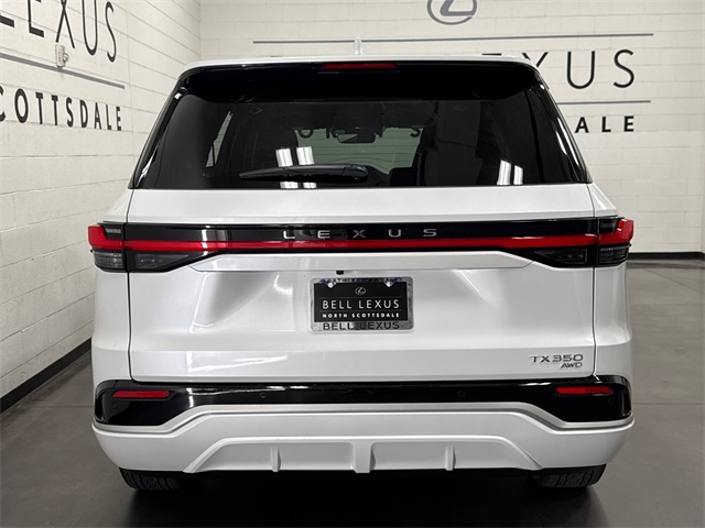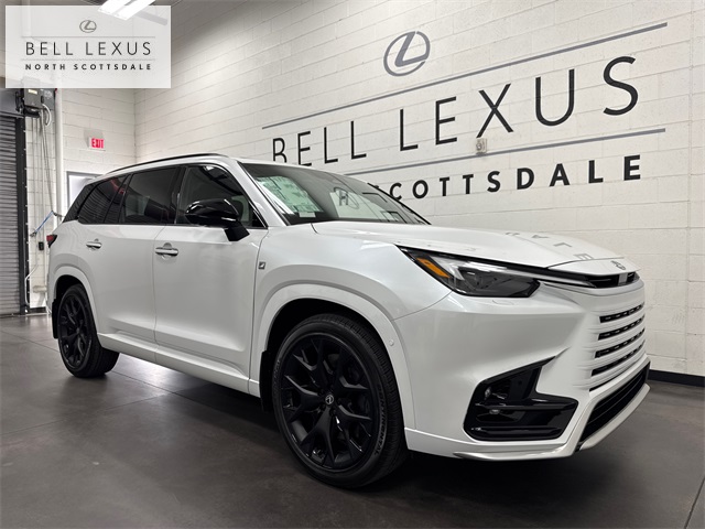 Arizona's Original and Largest Lexus Dealer, since 1989! ELITE OF LEXUS AWARD WINNER... for two decades. Bell Lexus is also the #1 Lexus dealer in the USA for Service Customer Satisfaction 6 out of the last 8 years. This Lexus TX is equipped with the following features: Accessory Package (2T) (All-Weather Cargo Mat and All-Weather Floor Liners), Convenience Package (Digital Key, Front Cross-Traffic Alert & Lane Change Assist, and Traffic Jam Assist), Technology Package (Advanced Park w/Remote Park and Panoramic View Monitor), 12 Speakers, 3rd row seats: split-bench, 4-Wheel Disc Brakes, ABS brakes, Adaptive suspension, Air Conditioning, Alloy Wheel Locks w/Triple Nickel Chrome Plating, Alloy wheels, AM/FM radio, Apple CarPlay/Android Auto, Auto High-beam Headlights, Auto tilt-away steering wheel, Auto-dimming door mirrors, Auto-dimming Rear-View mirror, Automatic temperature control, Brake assist, Bumpers: body-color, Color-Matched Door Edge Guards, Delay-off headlights, Driver door bin, Driver vanity mirror, Dual front impact airbags, Dual front side impact airbags, Electronic Stability Control, Emergency communication system: Safety Connect (5-year minimum), Exterior Parking Camera Rear, F SPORT Heated & Ventilated Front Seats, F SPORT Illuminated Door Sills, Four wheel independent suspension, Front & Rear Mudguards, Front anti-roll bar, Front Bucket Seats, Front Center Armrest, Front dual zone A/C, Front fog lights, Front reading lights, Fully automatic headlights, Garage door transmitter: HomeLink, Headlight cleaning, Heated door mirrors, Heated front seats, Heated rear seats, Heated steering wheel, Illuminated entry, Knee airbag, Leather Shift Knob, Leather steering wheel, Lexus Interface w/14" Touchscreen Display, Low tire pressure warning, Mark Levinson 21-Speaker PurePlay Surround Sound, Memory seat, Navigation system: Drive Connect Cloud Navigation (3-year trial subscription included), NuLuxe Seat Trim, Occupant sensing airbag, Outside temperature display, Overhead airbag, Panic alarm, Passenger door bin, Passenger vanity mirror, Power door mirrors, Power driver seat, Power Liftgate, Power moonroof, Power passenger seat, Power steering, Power windows, Radio data system, Radio: 12-Speaker Lexus Premium Sound System, Rain sensing wipers, Rear air conditioning, Rear anti-roll bar, Rear reading lights, Rear window defroster, Rear window wiper, Reclining 3rd row seat, Remote keyless entry, Security system, Speed control, Speed-sensing steering, Split folding rear seat, Spoiler, Steering wheel memory, Steering wheel mounted audio controls, Tachometer, Telescoping steering wheel, Tilt steering wheel, Traction control, Trip computer, Turn signal indicator mirrors, Variably intermittent wipers, Ventilated front seats, Ventilated rear seats, and Wheels: 22" Split 5-Spoke Alloy.