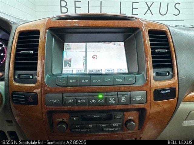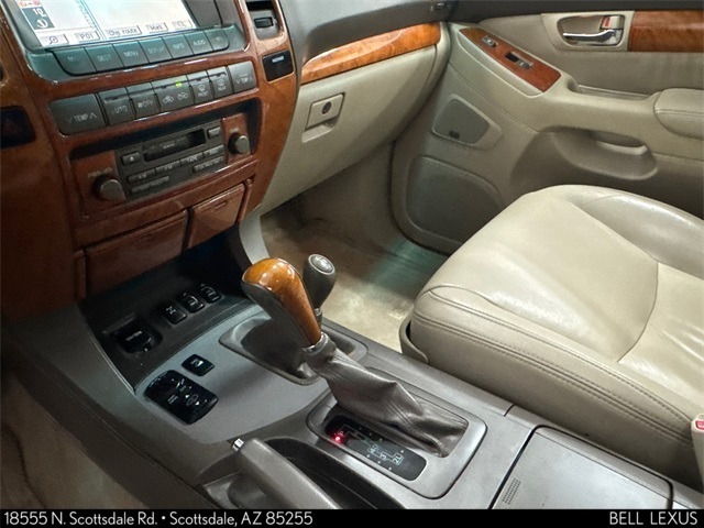 Arizona's Original and Largest Lexus Dealer, since 1989! ELITE OF LEXUS AWARD WINNER... for two decades. Bell Lexus is also the #1 Lexus dealer in the USA for Service Customer Satisfaction 6 out of the last 8 years. This Lexus GX is equipped with the following features: 11 Speakers, 17" x 7.5" JJ Aluminum Alloy Wheels, 3.727 Axle Ratio, 4-Wheel Disc Brakes, ABS brakes, Adaptive suspension, Air Conditioning, Alloy wheels, AM/FM radio, Auto tilt-away steering wheel, Auto-dimming Rear-View mirror, Auto-leveling suspension, Automatic temperature control, Brake assist, Bumpers: body-color, Cassette, CD player, Compass, Delay-off headlights, Driver door bin, Driver vanity mirror, Driver's Seat Mounted Armrest, Dual front impact airbags, Dual front side impact airbags, Electronic Stability Control, Front anti-roll bar, Front Bucket Seats, Front dual zone A/C, Front fog lights, Front reading lights, Front wheel independent suspension, Fully automatic headlights, Garage door transmitter: HomeLink, Genuine wood console insert, Genuine wood dashboard insert, Genuine wood door panel insert, Heated door mirrors, Heated Front Bucket Seats, Heated front seats, Illuminated entry, Illuminated running boards, Leather Seat Trim, Leather Shift Knob, Leather steering wheel, Low tire pressure warning, Memory seat, Outside temperature display, Overhead airbag, Overhead console, Panic alarm, Passenger door bin, Passenger seat mounted armrest, Passenger vanity mirror, Power door mirrors, Power driver seat, Power moonroof, Power passenger seat, Power steering, Power windows, Premium ETR AM/FM Stereo w/6-Disc CD, Rain sensing wipers, Rear anti-roll bar, Rear audio controls, Rear seat center armrest, Rear window defroster, Rear window wiper, Remote keyless entry, Roof rack, Security system, Speed control, Speed-sensing steering, Split folding rear seat, Steering wheel memory, Steering wheel mounted audio controls, Tachometer, Telescoping steering wheel, Tilt steering wheel, Traction control, Trip computer, and Variably intermittent wipers.