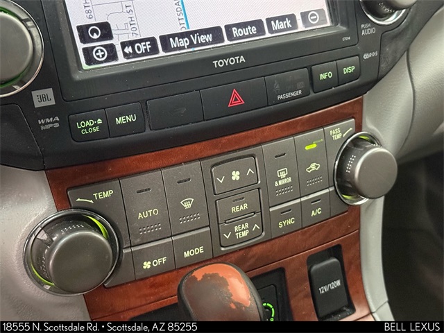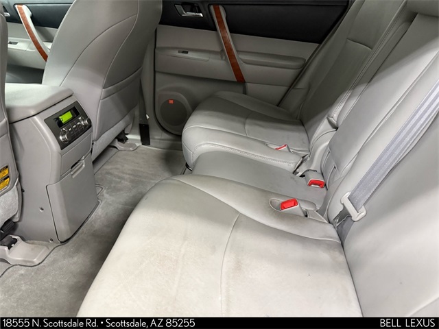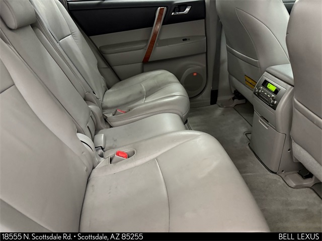 Arizona's Original and Largest Lexus Dealer, since 1989! ELITE OF LEXUS AWARD WINNER... for two decades. Bell Lexus is also the #1 Lexus dealer in the USA for Service Customer Satisfaction 6 out of the last 8 years. This Toyota Highlander is equipped with the following features: 3.5L V6 SMPI DOHC, AWD, 19" x 7.5J 5-Spoke Aluminum Alloy Wheels, 3.48 Axle Ratio, 3rd row seats: bench, 4-Wheel Disc Brakes, 6 Speakers, ABS brakes, Air Conditioning, Alloy wheels, AM/FM radio, AM/FM/6 CD Changer w/6 Speakers, Anti-whiplash front head restraints, Auto-dimming Rear-View mirror, Automatic temperature control, Brake assist, Bumpers: body-color, CD player, Compass, Delay-off headlights, Driver door bin, Driver vanity mirror, Dual front impact airbags, Dual front side impact airbags, Electronic Stability Control, Exterior Parking Camera Rear, Four wheel independent suspension, Front anti-roll bar, Front Bucket Seats, Front Center Armrest, Front dual zone A/C, Front fog lights, Front reading lights, Fully automatic headlights, Garage door transmitter: Homelink, Heated door mirrors, Illuminated entry, Knee airbag, Leather Seat Trim, Low tire pressure warning, Occupant sensing airbag, Outside temperature display, Overhead airbag, Overhead console, Panic alarm, Passenger door bin, Passenger vanity mirror, Power door mirrors, Power driver seat, Power passenger seat, Power steering, Power windows, Rear anti-roll bar, Rear reading lights, Rear window defroster, Rear window wiper, Remote keyless entry, Roof rack: rails only, Security system, Speed control, Speed-sensing steering, Split folding rear seat, Spoiler, Steering wheel mounted A/C controls, Steering wheel mounted audio controls, Tachometer, Telescoping steering wheel, Tilt steering wheel, Traction control, Trip computer, and Variably intermittent wipers.