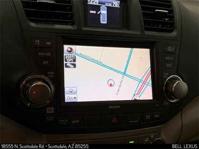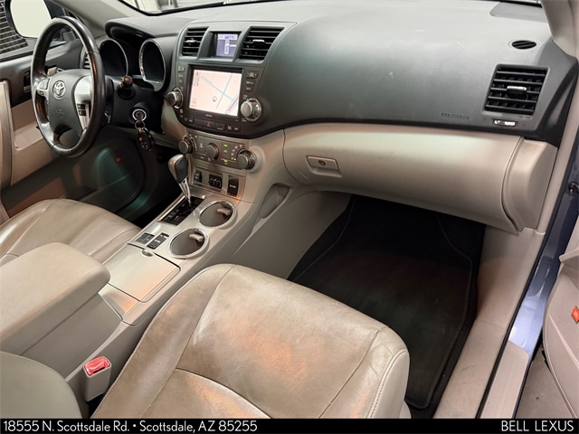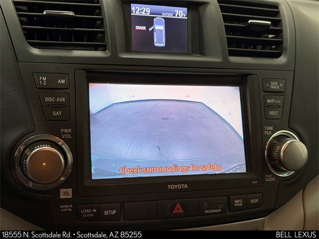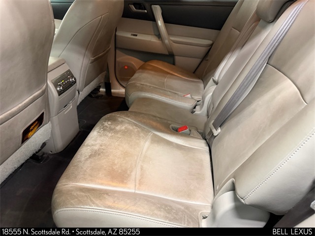 Arizona's Original and Largest Lexus Dealer, since 1989! ELITE OF LEXUS AWARD WINNER... for two decades. Bell Lexus is also the #1 Lexus dealer in the USA for Service Customer Satisfaction 6 out of the last 8 years. This Toyota Highlander is equipped with the following features: V6 Tow Prep Package, Tonneau Cover Package, Radio: JBL AM/FM 4-Disc CD Changer, Voice-Activated Touch-Screen DVD Navigation System, 17" x 7.5J 6-Spoke Aluminum Alloy Wheels, 3.48 Axle Ratio, 3.5" Multi-Information Display (MID), 3rd row seats: split-bench, 4-Wheel Disc Brakes, 6 Speakers, ABS brakes, Air Conditioning, Alloy wheels, AM/FM radio: SiriusXM, AM/FM/CD w/6 Speakers, Anti-Theft Alarm System w/Engine Immobilizer, Anti-whiplash front head restraints, Auto-dimming Rear-View mirror, Black Roof Rails, Brake assist, Bumpers: body-color, CD player, Compass, Delay-off headlights, Driver door bin, Driver vanity mirror, Dual front impact airbags, Dual front side impact airbags, Electrochromic Inside Rear View Day/Night Mirror, Electronic Stability Control, Exterior Parking Camera Rear, Four wheel independent suspension, Front anti-roll bar, Front Bucket Seats, Front Center Armrest, Front fog lights, Front reading lights, Fully automatic headlights, Garage door transmitter, Heated door mirrors, Heated Front Bucket Seats, Heated front seats, Heated Outside Mirrors, HomeLink Universal Transceiver, Illuminated entry, Integrated Fog Lamps, Knee airbag, Leather Seat Material, Leather Shift Knob, Low tire pressure warning, Occupant sensing airbag, Outside temperature display, Overhead airbag, Overhead console, Panic alarm, Passenger door bin, Passenger vanity mirror, Power Back Door, Power door mirrors, Power driver seat, Power Liftgate, Power moonroof, Power steering, Power Tilt/Slide Moonroof, Power windows, Radio data system, Rear air conditioning, Rear anti-roll bar, Rear Lift-Up Glass Hatch, Rear reading lights, Rear window defroster, Rear window wiper, Remote keyless entry, Roof rack: rails only, Security system, Speed control, Speed-sensing steering, Split folding rear seat, Spoiler, Steering wheel mounted audio controls, Tachometer, Telescoping steering wheel, Tilt steering wheel, Traction control, Trip computer, Variably intermittent wipers, and Windshield Wiper De-Icer.