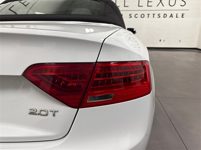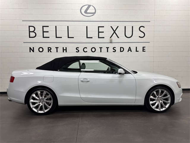Arizona's Original and Largest Lexus Dealer, since 1989! ELITE OF LEXUS AWARD WINNER... for two decades. Bell Lexus is also the #1 Lexus dealer in the USA for Service Customer Satisfaction 6 out of the last 8 years. This Audi A5 is equipped with the following features: Audi MMI Navigation Plus Package (Audi Parking System Plus w/Rearview Camera, HDD Navigation w/o Voice Control, and Radio: 1 CD/DVD-Player & HD), Convenience Package (Bluetooth Preparation for Mobile Phone and HomeLink Garage Door Opener), Lighting Package (Audi Xenon Plus Front Lighting and Automatic Headlamp Leveling), Premium Plus Package (3-Step Heated Front Seats, Auto-Dimming Heated Exterior Mirrors, Auto-Dimming Interior Mirror w/Compass, and Memory Function for Driver), Gray w/Leather Seating Surfaces, 10 Speakers, 4-Wheel Disc Brakes, 8.5J x 18" 5-Spoke V-Design Wheels, ABS brakes, Air Conditioning, AM/FM radio: SiriusXM, Anti-whiplash front head restraints, Automatic temperature control, Brake assist, Bumpers: body-color, CD player, Convertible roof lining, Convertible roof wind blocker, Delay-off headlights, Driver door bin, Driver vanity mirror, Dual front impact airbags, Dual front side impact airbags, Electronic Stability Control, Four wheel independent suspension, Front anti-roll bar, Front Bucket Seats, Front Center Armrest, Front dual zone A/C, Front fog lights, Front reading lights, Glass rear window, Heated door mirrors, Illuminated entry, Integrated roll-over protection, Knee airbag, Leather Seating Surfaces, Leather Shift Knob, Leather steering wheel, Low tire pressure warning, Occupant sensing airbag, Outside temperature display, Panic alarm, Passenger door bin, Passenger vanity mirror, Power adjustable front head restraints, Power convertible roof, Power door mirrors, Power driver seat, Power passenger seat, Power steering, Power windows, Radio data system, Radio: Audi Concert System w/1CD Player, Rain sensing wipers, Rear air conditioning, Rear anti-roll bar, Rear fog lights, Rear reading lights, Rear window defroster, Remote keyless entry, Security system, Speed control, Speed-sensing steering, Speed-Sensitive Wipers, Split folding rear seat, Steering wheel mounted audio controls, Tachometer, Telescoping steering wheel, Tilt steering wheel, Traction control, Trip computer, Turn signal indicator mirrors, and Variably intermittent wipers.