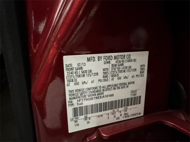 - VIN : 1FT7W2BT6EEA10185