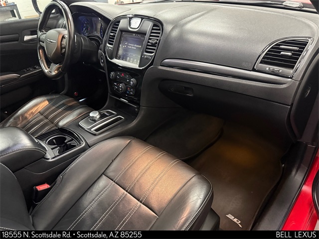 Arizona's Original and Largest Lexus Dealer, since 1989! ELITE OF LEXUS AWARD WINNER... for two decades. Bell Lexus is also the #1 Lexus dealer in the USA for Service Customer Satisfaction 6 out of the last 8 years. This Chrysler 300 is equipped with the following features: 300S Premium Group (1 Year Trial (Registration Required), 5-Year SiriusXM Traffic Service, 5-Year SiriusXM Travel Link Service, 8.4" Touchscreen Display, Auto-Dimming Exterior Driver Mirror, Blind Spot & Cross Path Detection, Dual-Pane Panoramic Sunroof, Exterior Mirrors Courtesy Lamps, Exterior Mirrors w/Supplemental Signals, GPS Antenna Input, GPS Navigation, Harman Radio Manufacturer, HD Radio, Integrated Voice Command w/Bluetooth, Media Hub (SD, USB, AUX), ParkSense Front/Rear Park Assist System, Power Multi Function Mirror Manual Fold, Radio: Uconnect 8.4 NAV, SiriusXM Satellite Radio, SiriusXM Traffic, SiriusXM Travel Link, and Uconnect Access), Quick Order Package 22G, 10 Speakers, 4-Wheel Disc Brakes, ABS brakes, Air Conditioning, Alloy wheels, AM/FM radio: SiriusXM, Anti-whiplash front head restraints, Automatic temperature control, Black Painted Roof, Brake assist, Bumpers: body-color, Compass, Delay-off headlights, Driver door bin, Driver vanity mirror, Dual front impact airbags, Dual front side impact airbags, Electronic Stability Control, Four wheel independent suspension, Front anti-roll bar, Front Bucket Seats, Front Center Armrest, Front dual zone A/C, Front fog lights, Front reading lights, Fully automatic headlights, Garage door transmitter, Heated door mirrors, Heated front seats, Illuminated entry, Knee airbag, Leather Trimmed Sport Bucket Seats, Low tire pressure warning, Occupant sensing airbag, Outside temperature display, Overhead airbag, Overhead console, Panic alarm, ParkView Rear Back-Up Camera, Passenger door bin, Passenger vanity mirror, Power door mirrors, Power driver seat, Power passenger seat, Power steering, Power windows, Radio data system, Radio: Uconnect 8.4, Rear anti-roll bar, Rear reading lights, Rear seat center armrest, Rear window defroster, Remote keyless entry, Security system, Speed control, Speed-sensing steering, Speed-Sensitive Wipers, Split folding rear seat, Steering wheel mounted audio controls, Tachometer, Telescoping steering wheel, Tilt steering wheel, Traction control, Trip computer, Variably intermittent wipers, and Wheels: 19" x 7.5" Aluminum HyperBlack.