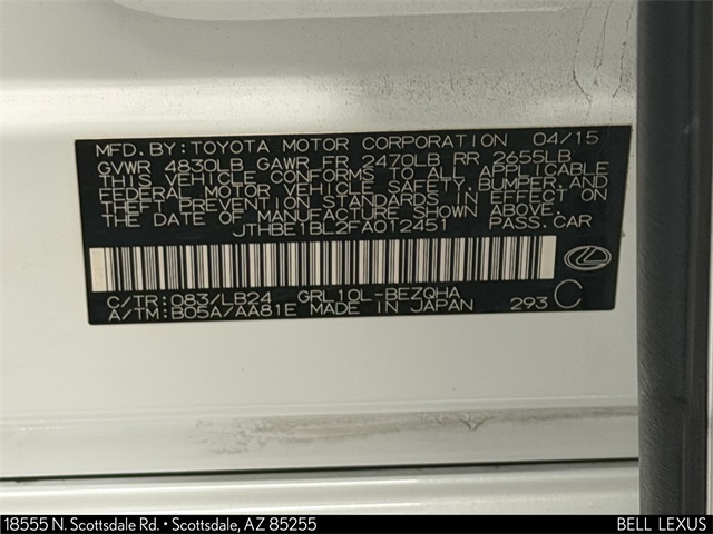 - VIN : JTHBE1BL2FA012451