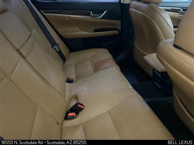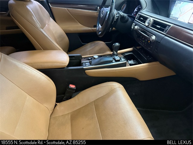 Arizona's Original and Largest Lexus Dealer, since 1989! ELITE OF LEXUS AWARD WINNER... for two decades. Bell Lexus is also the #1 Lexus dealer in the USA for Service Customer Satisfaction 6 out of the last 8 years. This Lexus GS is equipped with the following features: Premium Package (Climate Concierge, Heated/Ventilated Front Seats, Power Rear Sunshade, and Rain Sensing Wipers), Flaxen w/Leather-Trimmed Seats, Navigation System, 12 Speakers, 4-Wheel Disc Brakes, ABS brakes, Air Conditioning, AM/FM radio: SiriusXM, Anti-whiplash front head restraints, Auto tilt-away steering wheel, Auto-dimming door mirrors, Auto-dimming Rear-View mirror, Automatic temperature control, Blind Spot Monitor, Brake assist, Bumpers: body-color, CD player, Compass, Delay-off headlights, Driver door bin, Driver vanity mirror, Dual front impact airbags, Dual front side impact airbags, DVD-Audio, Electronic Stability Control, Emergency communication system: Safety Connect, Exterior Parking Camera Rear, Four wheel independent suspension, Front anti-roll bar, Front Bucket Seats, Front Center Armrest, Front dual zone A/C, Front fog lights, Front reading lights, Fully automatic headlights, Garage door transmitter: HomeLink, Genuine wood console insert, Genuine wood dashboard insert, Genuine wood door panel insert, Heated door mirrors, High-Intensity Discharge Headlights, Illuminated entry, Intuitive Park Assist (IPA), Knee airbag, Leather Shift Knob, Leather steering wheel, Leather-Trimmed Seats, Low tire pressure warning, Memory seat, Occupant sensing airbag, One-Touch Power Trunk, Outside temperature display, Overhead airbag, Overhead console, Panic alarm, Passenger door bin, Passenger vanity mirror, Power door mirrors, Power driver seat, Power moonroof, Power passenger seat, Power steering, Power windows, Power-Folding Exterior Mirrors, Premium audio system: Lexus/Pioneer, Radio data system, Radio: Lexus Premium AM/FM/DVD/HD Audio System, Rear anti-roll bar, Rear reading lights, Rear seat center armrest, Rear side impact airbag, Rear window defroster, Remote keyless entry, Security system, Speed control, Speed-sensing steering, Speed-Sensitive Wipers, Steering wheel memory, Steering wheel mounted audio controls, Tachometer, Telescoping steering wheel, Tilt steering wheel, Traction control, Trip computer, Turn signal indicator mirrors, Variably intermittent wipers, Voltmeter, and Wheels: 18" x 8" Split 5-Spoke Alloy.