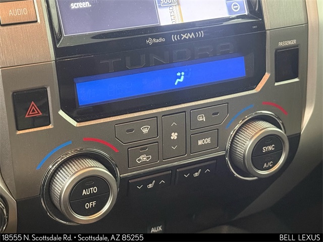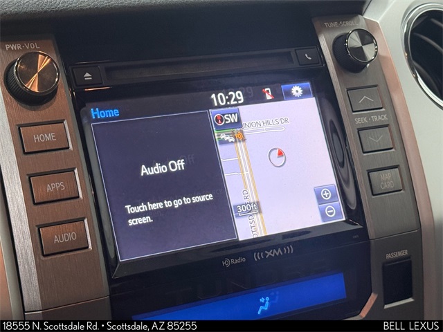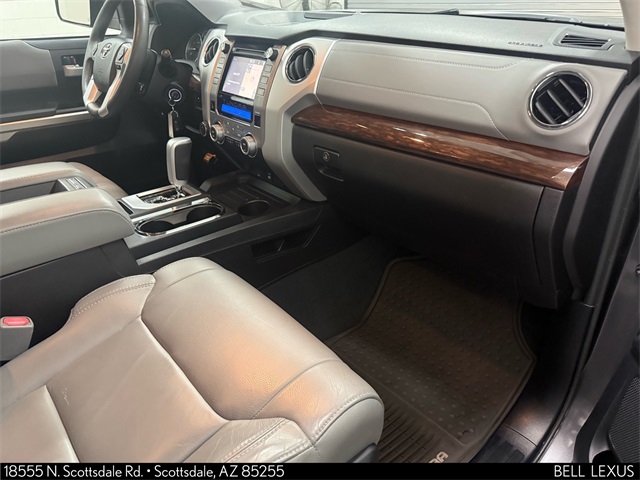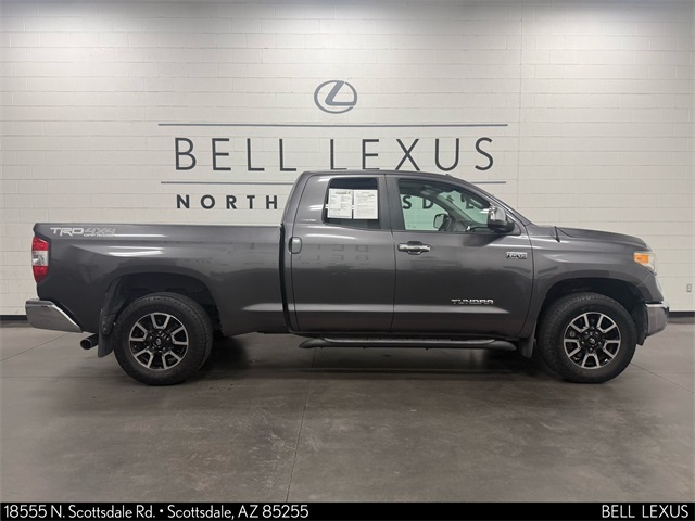 Arizona's Original and Largest Lexus Dealer, since 1989! ELITE OF LEXUS AWARD WINNER... for two decades. Bell Lexus is also the #1 Lexus dealer in the USA for Service Customer Satisfaction 6 out of the last 8 years. This Toyota Tundra is equipped with the following features: Leather Seat Trim w/TRD Off-Road Package, Limited Premium Package (Front & Rear Parking Assist Sonar, Glass Breakage Sensors (GBS), Illuminated Entry System, and Power Windows w/Front Auto Up/Down), TRD Off Road Package (18" x 8J 5-Spoke TRD Off-Road Alloy Wheels, Bilstein Shock Absorbers, Rear Privacy Glass, and TRD Off-Road Graphics), 4WD, Graphite w/Leather Seat Trim or Leather Seat Trim w/TRD Off-Road Package, Navigation System, 4-Wheel Disc Brakes, 4.30 Axle Ratio, 7 Speakers, ABS brakes, Air Conditioning, AM/FM radio: SiriusXM, Auto-dimming Rear-View mirror, Automatic temperature control, Bedliner w/o Deck Rail System, Brake assist, CD player, Compass, Driver door bin, Driver vanity mirror, Dual front impact airbags, Dual front side impact airbags, Electronic Stability Control, Exterior Parking Camera Rear, Front anti-roll bar, Front Bucket Seats, Front Center Armrest, Front dual zone A/C, Front fog lights, Front reading lights, Front wheel independent suspension, Garage door transmitter: HomeLink, Heated door mirrors, Heated Front Bucket Seats, Heated front seats, Illuminated entry, Knee airbag, Leather Seat Trim, Leather steering wheel, Low tire pressure warning, Occupant sensing airbag, Outside temperature display, Overhead airbag, Overhead console, Panic alarm, Passenger door bin, Passenger vanity mirror, Power door mirrors, Power driver seat, Power steering, Power windows, Radio data system, Radio: Entune AM/FM/HD w/CD Player, Rear reading lights, Rear step bumper, Remote keyless entry, Security system, Speed control, Speed-sensing steering, Split folding rear seat, Stainless Steel Exhaust Tip, Steering wheel mounted audio controls, Tachometer, Telescoping steering wheel, Tilt steering wheel, Traction control, Trip computer, Variably intermittent wipers, and Voltmeter.