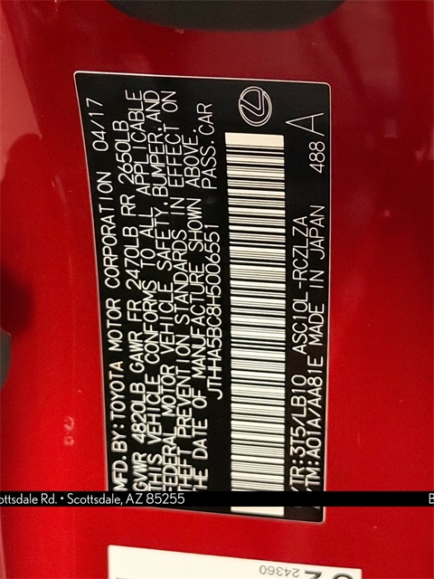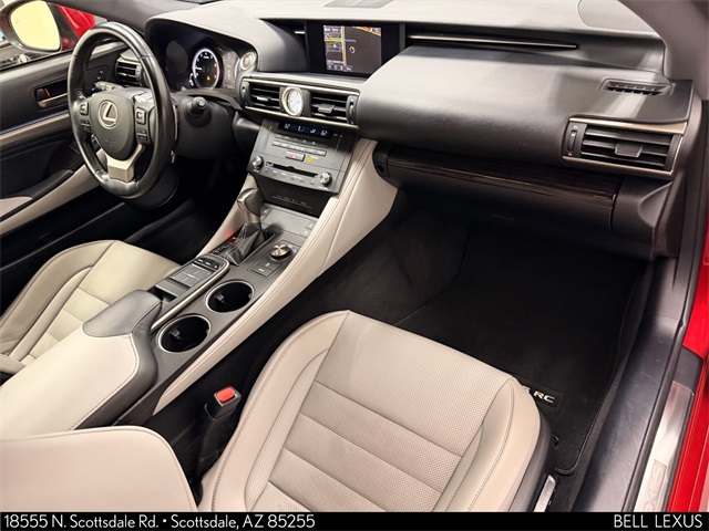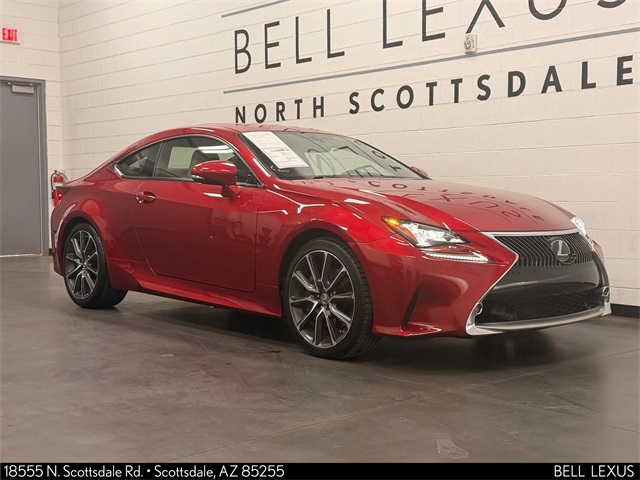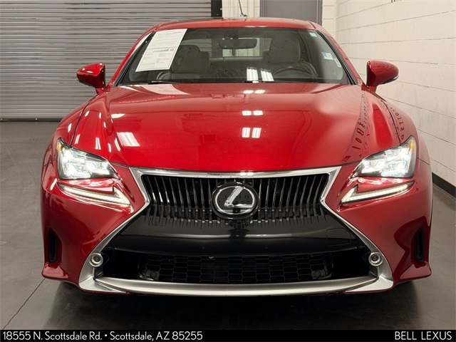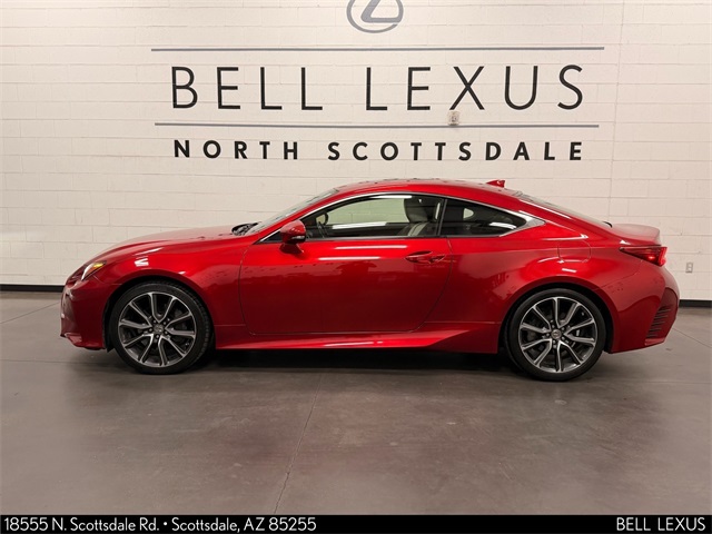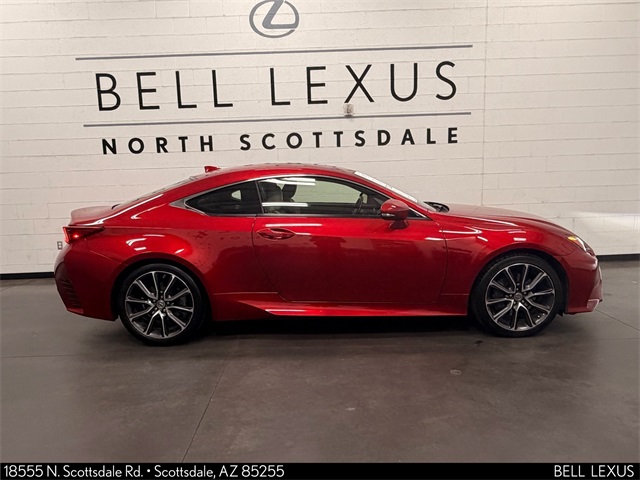 Arizona's Original and Largest Lexus Dealer, since 1989! ELITE OF LEXUS AWARD WINNER... for two decades. Bell Lexus is also the #1 Lexus dealer in the USA for Service Customer Satisfaction 6 out of the last 8 years. This Lexus RC is equipped with the following features: Luxury Package (Blind Spot Monitor w/Rear Cross Traffic Alert, Driver Seat Memory, Electrochromic Outside Mirrors, Heated & Vented Driver & Passenger Seats, Perf Leather-Trimmed Seat Mat. W/Contrast Stitch, Power Tilt/Telescoping Steering Column w/Memory, and Rain Sensing Wipers), 10 Speakers, 4-Wheel Disc Brakes, ABS brakes, Air Conditioning, All-Weather Floor Mats, AM/FM radio: SiriusXM, Auto-dimming Rear-View mirror, Automatic temperature control, Back-Up Monitor w/Dynamic Grid Lines, Brake assist, Bumpers: body-color, Cargo Net, Carpet Trunk Mat, CD player, Compass, Delay-off headlights, Driver door bin, Driver vanity mirror, Dual front impact airbags, Dual front side impact airbags, Electronic Stability Control, Emergency communication system: Safety Connect, Exterior Parking Camera Rear, Four wheel independent suspension, Front & Rear Intuitive Parking Assist, Front anti-roll bar, Front Bucket Seats, Front Center Armrest, Front dual zone A/C, Front reading lights, Fully automatic headlights, Garage door transmitter: HomeLink, Genuine wood dashboard insert, Genuine wood door panel insert, Heated door mirrors, Illuminated entry, Knee airbag, Leather Shift Knob, LED Fog Lamps, Lexus Enform App Suite, Lexus Enform Destinations, Low tire pressure warning, Moonroof w/Power Tilt/Slide, Navigation System, NuLuxe Seat Trim, Occupant sensing airbag, Outside temperature display, Overhead airbag, Overhead console, Panic alarm, Passenger door bin, Passenger vanity mirror, Power door mirrors, Power driver seat, Power Front Bucket Seats, Power passenger seat, Power steering, Power Tilt/Telescoping Steering Column, Power windows, Pre-Collision System, Premium Triple-Beam LED Headlamps, Radar Cruise Control, Radio data system, Radio: AM/FM/In-Dash CD Lexus Display Audio, Radio: AM/FM/In-Dash DVD/CD, Rear anti-roll bar, Rear reading lights, Rear side impact airbag, Rear window defroster, Remote keyless entry, Security system, Speed control, Speed-sensing steering, Speed-Sensitive Wipers, Split folding rear seat, Steering wheel mounted audio controls, Tachometer, Telescoping steering wheel, Tilt steering wheel, Traction control, Trip computer, Turn signal indicator mirrors, Variably intermittent wipers, and Wheels: 19" x 8" Fr & 19" x 9" Rr Aluminum Alloy.