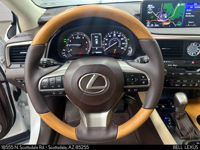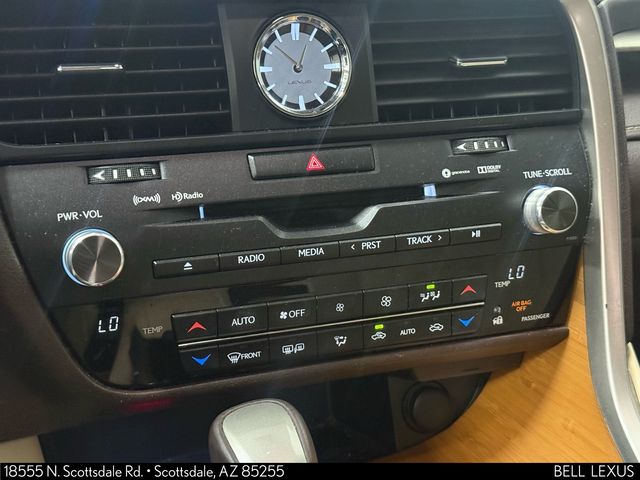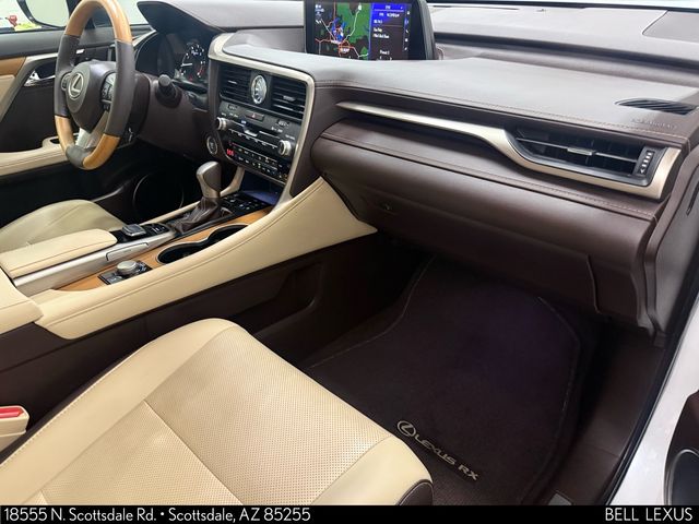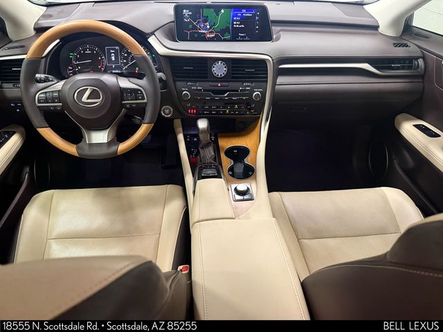 Arizona's Original and Largest Lexus Dealer, since 1989! ELITE OF LEXUS AWARD WINNER... for two decades. Bell Lexus is also the #1 Lexus dealer in the USA for Service Customer Satisfaction 6 out of the last 8 years. This Lexus RX is equipped with the following features: 12.3" Navigation System (Lexus Enform App Suite, Lexus Enform Destinations, and Single-Disc DVD Changer), Premium Package (Aluminum Roof Rails, Driver Seat/Steering/Mirror Memory - 3 Settings, Leather Seat Trim, and Rear Armrest Storage Compartment), Beige Leather, Blind Spot Monitor w/Rear Cross Traffic Alert, Heated Matte Bamboo Steering Wheel, Matte Bamboo Interior Trim, Power Tilt & Slide Moonroof, 3.329 Axle Ratio, 4-Wheel Disc Brakes, 9 Speakers, ABS brakes, Air Conditioning, AM/FM radio: SiriusXM, Anti-whiplash front head restraints, Auto High-beam Headlights, Auto-dimming Rear-View mirror, Automatic temperature control, Backup Monitor, Brake assist, Bumpers: body-color, CD player, Compass, Delay-off headlights, Driver door bin, Driver vanity mirror, Dual front impact airbags, Dual front side impact airbags, Electronic Stability Control, Exterior Parking Camera Rear, Four wheel independent suspension, Front anti-roll bar, Front Bucket Seats, Front Center Armrest, Front dual zone A/C, Front fog lights, Front reading lights, Fully automatic headlights, Garage door transmitter: HomeLink, Heated & Ventilated Front Seats, Heated door mirrors, Illuminated entry, Intuitive Parking Assist, Knee airbag, Leather Shift Knob, Leather steering wheel, Low tire pressure warning, Navigation System, NuLuxe Seat Trim, Occupant sensing airbag, Outside temperature display, Overhead airbag, Overhead console, Panic alarm, Passenger door bin, Passenger vanity mirror, Power door mirrors, Power driver seat, Power Liftgate, Power passenger seat, Power steering, Power windows, Radio data system, Radio: AM/FM/CD Lexus Display Audio, Rain sensing wipers, Rear anti-roll bar, Rear reading lights, Rear seat center armrest, Rear side impact airbag, Rear window defroster, Rear window wiper, Remote keyless entry, Security system, Speed control, Speed-sensing steering, Split folding rear seat, Spoiler, Steering wheel mounted audio controls, Tachometer, Telescoping steering wheel, Tilt steering wheel, Traction control, Trip computer, Turn signal indicator mirrors, Variably intermittent wipers, and Wheels: 20" x 8" Split 5-Spoke Dark Silver.