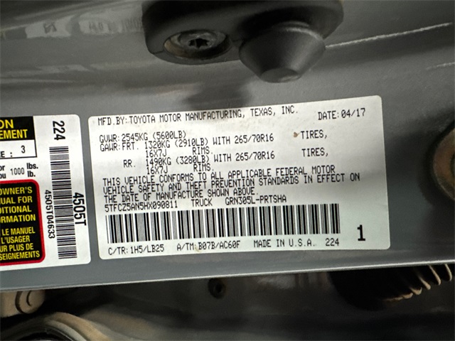 4WD, Tow Package (TR), Wheels: 16" x 7" TRD Black Alloy.
