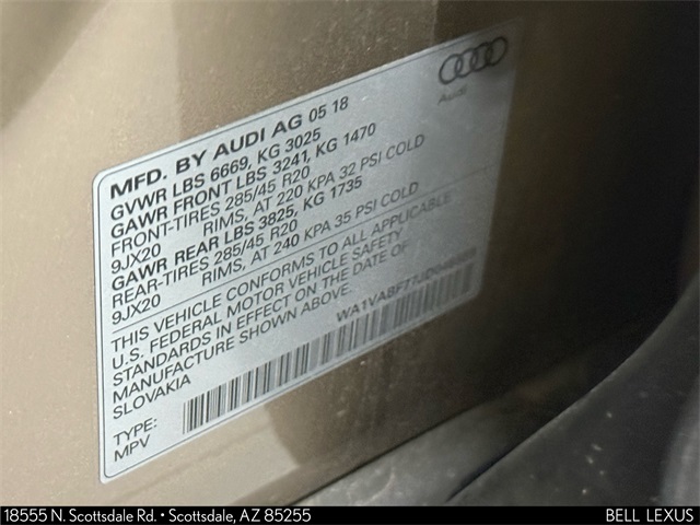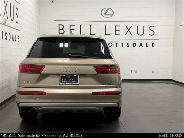 Arizona's Original and Largest Lexus Dealer, since 1989! ELITE OF LEXUS AWARD WINNER... for two decades. Bell Lexus is also the #1 Lexus dealer in the USA for Service Customer Satisfaction 6 out of the last 8 years. This Audi Q7 is equipped with the following features: Audi MMI Navigation Plus Package (Audi Connect CARE, Audi Connect PRIME & PLUS, Audi MMI Navigation Plus w/MMI Touch, and Audi Smartphone Interface), LED Interior Lighting Package, LED Interior Lighting Package Plus, Prestige Package (3D Bose Surround Sound System, Audi Side Assist w/Pre Sense Rear, Electric Tilt/Telescopic Steering Column w/Memory, Head-Up Display, Heated Auto-Dimming Power Folding Exterior Mirrors, Power Closing Doors, and Wheels: 20" 10-Spoke-Star Design Bi-Color), Vision Package (Audi Virtual Cockpit, Full LED Headlights, and Topview Camera System), Warm Weather Package (4-Zone Automatic Climate Control, Driver & Passenger Front Seats w/Ventilation, and Manual Window Shades For Rear Doors & Tailgate), 10 Speakers, 3.204 Axle Ratio, 3rd row seats: bench, 4-Wheel Disc Brakes, ABS brakes, Air Conditioning, AM/FM radio: SiriusXM, Auto-dimming Rear-View mirror, Automatic temperature control, Brake assist, Bumpers: body-color, CD player, Compass, Delay-off headlights, Driver door bin, Driver vanity mirror, Driver's Seat Mounted Armrest, Dual front impact airbags, Dual front side impact airbags, Electronic Stability Control, Exterior Parking Camera Rear, Four wheel independent suspension, Front anti-roll bar, Front Bucket Seats, Front dual zone A/C, Front fog lights, Front reading lights, Fully automatic headlights, Garage door transmitter: HomeLink, Heated door mirrors, Heated Front Bucket Seats, Heated front seats, High intensity discharge headlights: Xenon plus, Illuminated entry, Leather Seating Surfaces, Leather Shift Knob, Leather steering wheel, Low tire pressure warning, Memory seat, Occupant sensing airbag, Outside temperature display, Overhead airbag, Panic alarm, Passenger door bin, Passenger seat mounted armrest, Passenger vanity mirror, Power door mirrors, Power driver seat, Power Liftgate, Power moonroof, Power passenger seat, Power steering, Power windows, Radio data system, Radio: MMI Radio Plus w/Audi Sound System, Rain sensing wipers, Rear air conditioning, Rear anti-roll bar, Rear fog lights, Rear reading lights, Rear seat center armrest, Rear window defroster, Rear window wiper, Remote keyless entry, Roof rack: rails only, Security system, Speed control, Speed-sensing steering, Split folding rear seat, Spoiler, Steering wheel mounted audio controls, Tachometer, Telescoping steering wheel, Tilt steering wheel, Traction control, Trip computer, Turn signal indicator mirrors, and Variably intermittent wipers.
