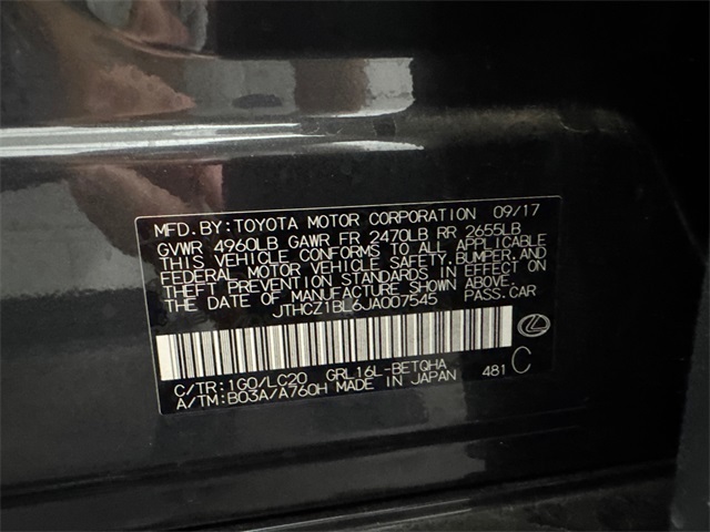- VIN : JTHCZ1BL6JA007545