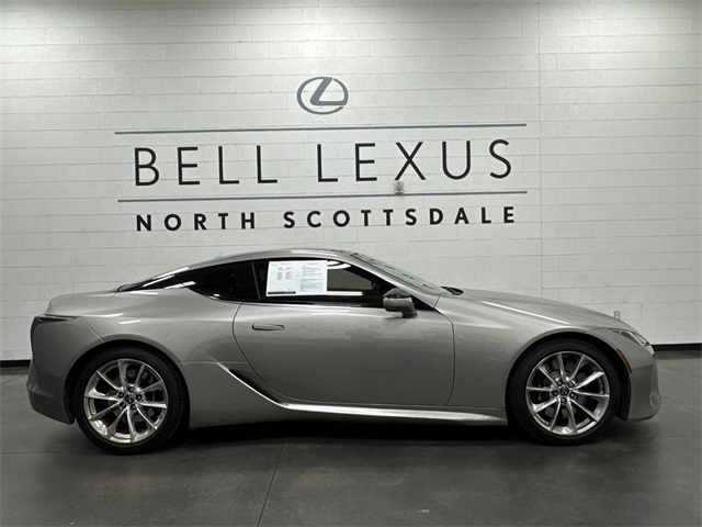 Arizona's Original and Largest Lexus Dealer, since 1989! ELITE OF LEXUS AWARD WINNER... for two decades. Bell Lexus is also the #1 Lexus dealer in the USA for Service Customer Satisfaction 6 out of the last 8 years. This Lexus LC is equipped with the following features: Convenience Package (Blind Spot Monitor and Front & Rear Clearance Backup Sonar), Touring Package (Alcantara Head Liner, Heated & Ventilated Front Bucket Seats, Radio: Mark Levinson Premium Surround Sound System, and Semi Aniline Leather Seat Surfaces), All Weather Package (Heated Steering Wheel and Windshield De-Icer), Color Heads Up Display, 12 Speakers, 4-Wheel Disc Brakes, ABS brakes, Adaptive suspension, Air Conditioning, AM/FM radio: SiriusXM, Auto High-beam Headlights, Auto tilt-away steering wheel, Auto-dimming door mirrors, Auto-dimming Rear-View mirror, Automatic temperature control, Brake assist, Bumpers: body-color, Compass, Delay-off headlights, Driver door bin, Driver vanity mirror, Dual front impact airbags, Dual front side impact airbags, Electronic Stability Control, Emergency communication system: Safety Connect, Exterior Parking Camera Rear, Four wheel independent suspension, Front anti-roll bar, Front Bucket Seats, Front Center Armrest, Front dual zone A/C, Front reading lights, Garage door transmitter: HomeLink, Illuminated entry, Knee airbag, Leather Seat Surfaces, Leather Shift Knob, Low tire pressure warning, Memory seat, Navigation System, Occupant sensing airbag, Outside temperature display, Overhead airbag, Panic alarm, Passenger door bin, Passenger vanity mirror, Power door mirrors, Power driver seat, Power passenger seat, Power steering, Power windows, Radio data system, Radio: Lexus Premium Audio, Rain sensing wipers, Rear anti-roll bar, Rear window defroster, Remote keyless entry, Security system, Speed control, Speed-sensing steering, Speed-Sensitive Wipers, Steering wheel memory, Steering wheel mounted audio controls, Tachometer, Telescoping steering wheel, Tilt steering wheel, Traction control, Trip computer, Turn signal indicator mirrors, Variably intermittent wipers, and Wheels: 20" 10-Spoke Forged Aluminum Alloy.
