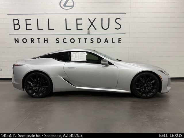 Arizona's Original and Largest Lexus Dealer, since 1989! ELITE OF LEXUS AWARD WINNER... for two decades. Bell Lexus is also the #1 Lexus dealer in the USA for Service Customer Satisfaction 6 out of the last 8 years. This Lexus LC is equipped with the following features: Convenience Package (Blind Spot Monitor and Front & Rear Clearance Backup Sonar), Sport Package w/Carbon-Fiber Roof (Alcantara & Leather Seat Surfaces and Carbon Fiber Roof), Accessory Package (Alloy Wheel Locks, Cargo Net - Spider, Carpet Trunk Mat, and Key Gloves), All Weather Package (Heated Steering Wheel and Windshield De-Icer), Color Heads Up Display, Limited-Slip Differential, Radio: Mark Levinson Premium Surround Sound System, Wheels: 21" Forged Aluminum, 12 Speakers, 4-Wheel Disc Brakes, ABS brakes, Adaptive suspension, Air Conditioning, AM/FM radio: SiriusXM, Auto High-beam Headlights, Auto tilt-away steering wheel, Auto-dimming door mirrors, Auto-dimming Rear-View mirror, Automatic temperature control, Brake assist, Bumpers: body-color, Compass, Delay-off headlights, Driver door bin, Driver vanity mirror, Dual front impact airbags, Dual front side impact airbags, Electronic Stability Control, Emergency communication system: Safety Connect, Exterior Parking Camera Rear, Four wheel independent suspension, Front anti-roll bar, Front Bucket Seats, Front Center Armrest, Front dual zone A/C, Front reading lights, Garage door transmitter: HomeLink, Illuminated entry, Knee airbag, Leather Seat Surfaces, Leather Shift Knob, Low tire pressure warning, Memory seat, Navigation System, Occupant sensing airbag, Outside temperature display, Overhead airbag, Panic alarm, Passenger door bin, Passenger vanity mirror, Power door mirrors, Power driver seat, Power passenger seat, Power steering, Power windows, Radio data system, Radio: Lexus Premium Audio, Rain sensing wipers, Rear anti-roll bar, Rear window defroster, Remote keyless entry, Security system, Speed control, Speed-sensing steering, Speed-Sensitive Wipers, Steering wheel memory, Steering wheel mounted audio controls, Tachometer, Telescoping steering wheel, Tilt steering wheel, Traction control, Trip computer, Turn signal indicator mirrors, and Variably intermittent wipers.