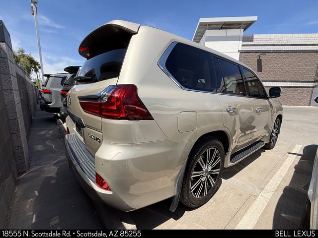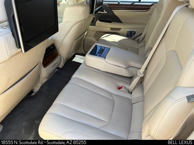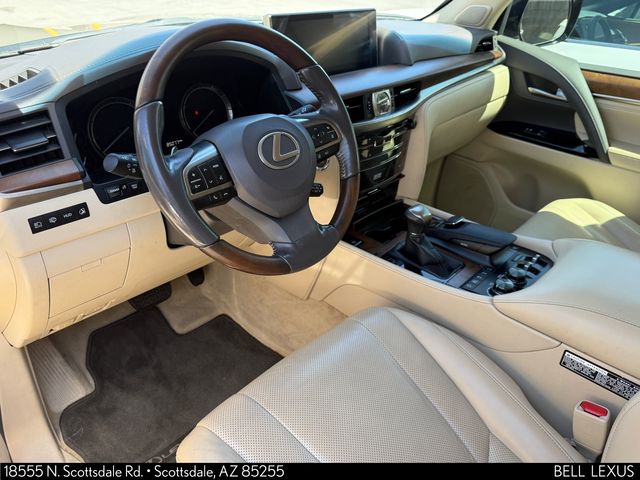 Arizona's Original and Largest Lexus Dealer, since 1989! ELITE OF LEXUS AWARD WINNER... for two decades. Bell Lexus is also the #1 Lexus dealer in the USA for Service Customer Satisfaction 6 out of the last 8 years. This Lexus LX is equipped with the following features: Luxury Package (Climate Comfort Seats and Semi-Aniline Leather Seat Trim), Parchment w/Leather Seat Trim, DVD Rear Seat Entertainment System, Heads-Up Display, Radio: Mark Levinson Audio System, 3.307 Axle Ratio, 4-Wheel Disc Brakes, 9 Speakers, ABS brakes, Adaptive suspension, Air Conditioning, Alloy wheels, AM/FM radio: SiriusXM, Anti-whiplash front head restraints, Auto High-beam Headlights, Auto tilt-away steering wheel, Auto-dimming door mirrors, Auto-dimming Rear-View mirror, Auto-leveling suspension, Automatic temperature control, Blind spot sensor: Blind Spot Monitor warning, Brake assist, Bumpers: body-color, CD player, Delay-off headlights, Distance pacing cruise control: All-Speed Dynamic Radar Cruise Control, Driver door bin, Driver vanity mirror, Driver's Seat Mounted Armrest, Dual front impact airbags, Dual front side impact airbags, DVD-Audio, Electronic Stability Control, Emergency communication system, Exterior Parking Camera Rear, Front anti-roll bar, Front Bucket Seats, Front dual zone A/C, Front fog lights, Front reading lights, Front wheel independent suspension, Fully automatic headlights, Garage door transmitter: HomeLink, Genuine wood console insert, Genuine wood dashboard insert, Genuine wood door panel insert, Headlight cleaning, Heated door mirrors, Heated Front Bucket Seats, Heated front seats, Illuminated entry, Illuminated running boards, Knee airbag, Leather Seat Trim, Leather Shift Knob, Leather steering wheel, Low tire pressure warning, Memory seat, Occupant sensing airbag, Outside temperature display, Overhead airbag, Overhead console, Panic alarm, Passenger door bin, Passenger seat mounted armrest, Passenger vanity mirror, Power door mirrors, Power driver seat, Power moonroof, Power passenger seat, Power steering, Power windows, Radio data system, Radio: Lexus Premium Audio AM/FM/HD Single DVD, Rain sensing wipers, Rear air conditioning, Rear anti-roll bar, Rear dual zone A/C, Rear reading lights, Rear seat center armrest, Rear side impact airbag, Rear window defroster, Rear window wiper, Remote keyless entry, Roof rack, Security system, Speed control, Speed-sensing steering, Split folding rear seat, Spoiler, Steering wheel memory, Steering wheel mounted audio controls, Sun blinds, Tachometer, Telescoping steering wheel, Tilt steering wheel, Traction control, Trip computer, Turn signal indicator mirrors, Variably intermittent wipers, Ventilated rear seats, Voltmeter, and Wheels: 20" x 8.5" Split 10-Spoke Aluminum Alloy.