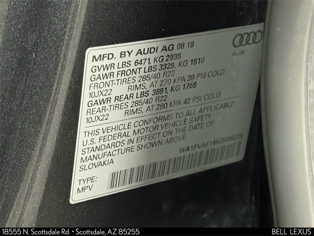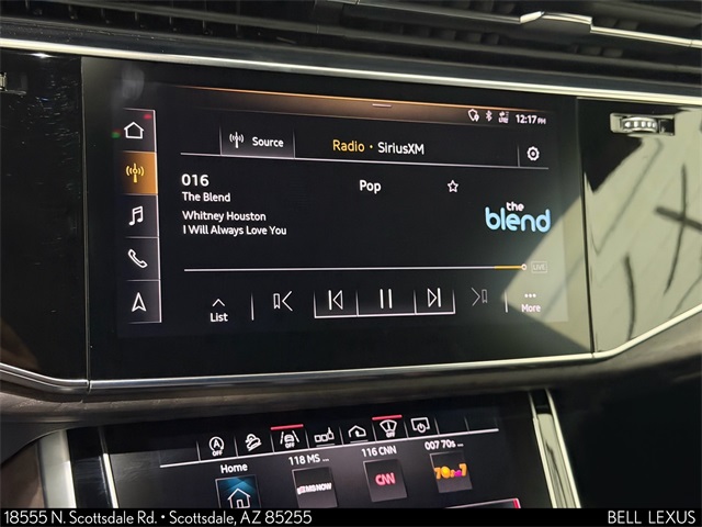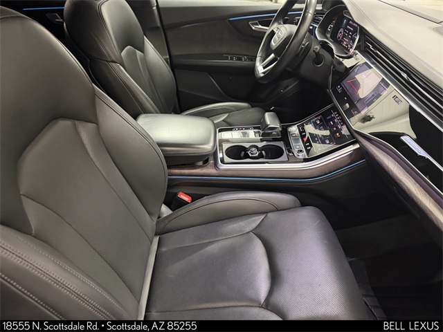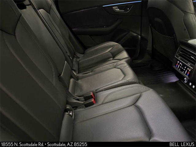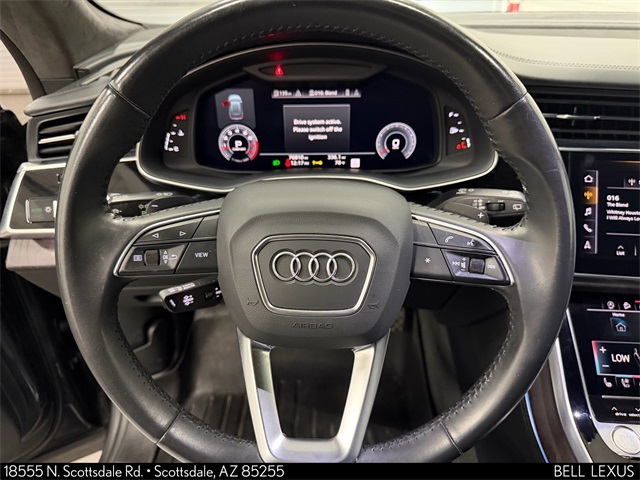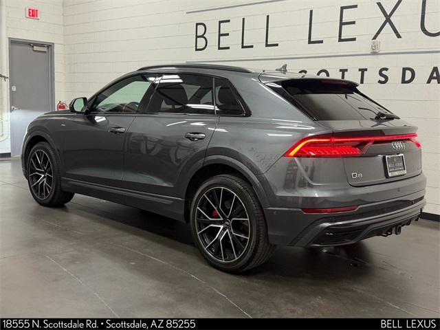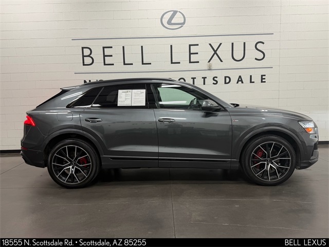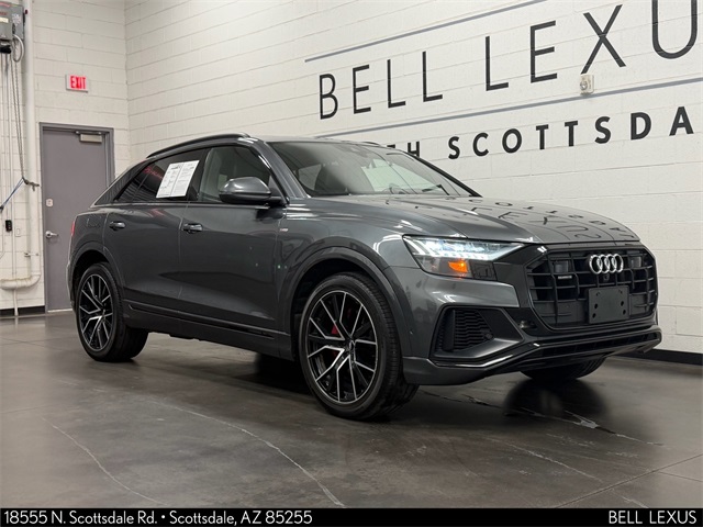 Arizona's Original and Largest Lexus Dealer, since 1989! ELITE OF LEXUS AWARD WINNER... for two decades. Bell Lexus is also the #1 Lexus dealer in the USA for Service Customer Satisfaction 6 out of the last 8 years. This Audi Q8 is equipped with the following features: Adaptive Chassis Package (Adaptive Air Suspension), Cold Weather Package (Heated Rear Seats and Heated Steering Wheel), Driver Assistance Package (Audi Active Lane Departure Warning, Audi Adaptive Cruise Assist, and Traffic Sign Recognition), Extended Leather Package, Luxury Package (Dual Pane Glass, Individual Contour Seats, Light Alcantara Headliner, and Valcona Leather Seat Trim), Luxury Package w/PAB, Prestige (Bang & Olufsen 3D Premium Sound System, HD Matrix Design LED Headlights, Headlight Washer System, Power Door Closers, and Wheels: 21" 5-Spoke W-Design), Towing Package, Year 1 Package (Front & Rear S line Bumpers, Red Brake Calipers, and S line Illuminated Door Sills), Year 1 Package w/S1S1/Y4Y4, 10 Speakers, 4-Wheel Disc Brakes, ABS brakes, Adaptive suspension, Air Conditioning, AM/FM radio: SiriusXM, Audi First Aid Kit, Audi smartphone interface (Apple CarPlay/Android Auto), Auto-dimming Rear-View mirror, Automatic temperature control, Axle Ratio: TBA, Black Alcantara Headliner, Brake assist, Bumpers: body-color, CD/DVD Player, Collapsible Fabric Audi Trunk Cargo Storage Box, Compass, Delay-off headlights, Driver door bin, Driver vanity mirror, Dual front impact airbags, Dual front side impact airbags, Electronic Stability Control, Emergency communication system: Audi connect CARE, Exterior Parking Camera Rear, Four wheel independent suspension, Front & Rear Doors Audi Beam-Rings, Front anti-roll bar, Front Bucket Seats, Front Center Armrest, Front dual zone A/C, Front fog lights, Front reading lights, Fully automatic headlights, Garage door transmitter: HomeLink, Genuine wood door panel insert, Heated door mirrors, Heated Front Bucket Seats, Heated front seats, Illuminated entry, Leather Seating Surfaces, Leather Shift Knob, Leather steering wheel, Low tire pressure warning, Memory seat, Navigation System, Occupant sensing airbag, Outside temperature display, Overhead airbag, Overhead console, Panic alarm, Passenger door bin, Passenger vanity mirror, Power door mirrors, Power driver seat, Power Liftgate, Power moonroof, Power passenger seat, Power steering, Power windows, Radio data system, Radio: Audi MMI Navigation Plus w/Touch Response, Rain sensing wipers, Rear air conditioning, Rear anti-roll bar, Rear fog lights, Rear Load Sill/Door Cup/Door Edge Paint Protection, Rear reading lights, Rear seat center armrest, Rear window defroster, Rear window wiper, Remote keyless entry, Roof rack: rails only, Security system, Speed control, Speed-sensing steering, Split folding rear seat, Spoiler, Steering wheel memory, Steering wheel mounted audio controls, Tachometer, Telescoping steering wheel, Tilt steering wheel, Traction control, Trip computer, Turn signal indicator mirrors, USB Cables, and Variably intermittent wipers.