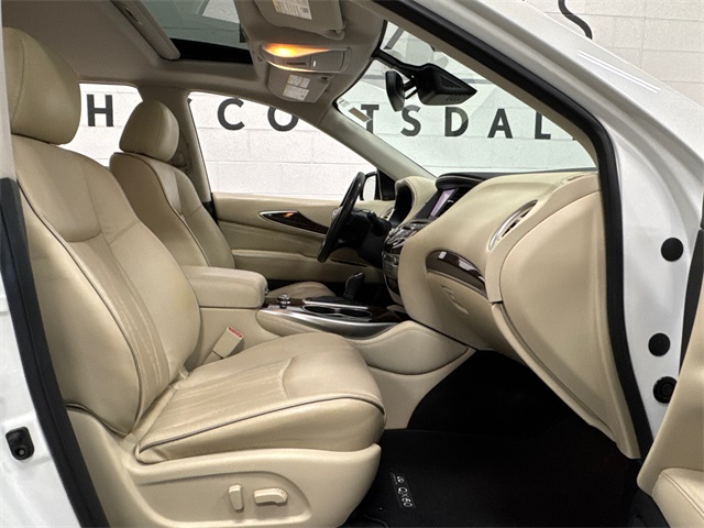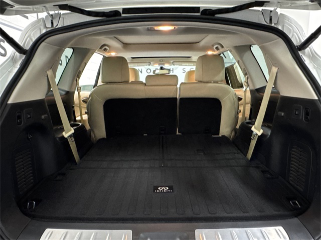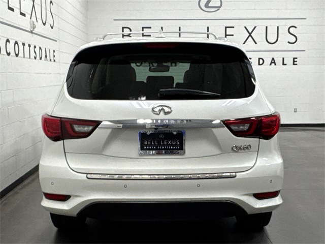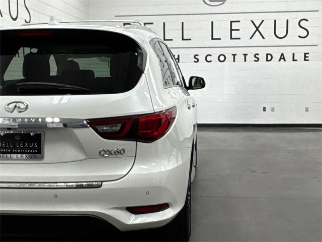Arizona's Original and Largest Lexus Dealer, since 1989! ELITE OF LEXUS AWARD WINNER... for two decades. Bell Lexus is also the #1 Lexus dealer in the USA for Service Customer Satisfaction 6 out of the last 8 years. This INFINITI QX60 is equipped with the following features: Essential Package, ProACTIVE Package (Active Trace Control, Auto Side Dimming Mirrors, Backup Collision Intervention (BCI), Blind Spot Intervention (BSI) System, Distance Control Assist, ECO Pedal, Front & Rear Sonar Sensors (4FR/4RR), Front Pre-Crash Seatbelts, High Beam Assist, Intelligent Cruise Control (Full-Speed Range), Lane Departure Prevention (LDP), and Lane Departure Warning System), Sensory Package, 13 Speakers, 3rd row seats: bench, 4-Wheel Disc Brakes, 5.25 Axle Ratio, ABS brakes, Air Conditioning, Alloy wheels, AM/FM radio: SiriusXM, Anti-whiplash front head restraints, Auto-dimming Rear-View mirror, Automatic temperature control, Bodyside moldings, Brake assist, Bumpers: body-color, CD player, Delay-off headlights, Driver door bin, Driver vanity mirror, Dual front impact airbags, Dual front side impact airbags, Electronic Stability Control, Four wheel independent suspension, Front anti-roll bar, Front Bucket Seats, Front Center Armrest w/Storage, Front dual zone A/C, Front fog lights, Front reading lights, Fully automatic headlights, Garage door transmitter: HomeLink, Heated door mirrors, Heated Front Seats, Heated front seats, Heated steering wheel, Illuminated entry, Leather steering wheel, Leatherette Seat Trim, Low tire pressure warning, Memory seat, Occupant sensing airbag, Outside temperature display, Overhead airbag, Overhead console, Panic alarm, Passenger door bin, Passenger vanity mirror, Power door mirrors, Power driver seat, Power Liftgate, Power moonroof, Power passenger seat, Power steering, Power windows, Radio data system, Radio: AM/FM/CD/DVD w/Bose Premium Audio System, Rear air conditioning, Rear anti-roll bar, Rear reading lights, Rear seat center armrest, Rear window defroster, Rear window wiper, Reclining 3rd row seat, Remote keyless entry, Roof rack: rails only, Security system, Speed control, Speed-sensing steering, Speed-Sensitive Wipers, Split folding rear seat, Spoiler, Steering wheel memory, Steering wheel mounted audio controls, Tachometer, Telescoping steering wheel, Tilt steering wheel, Traction control, Trip computer, Turn signal indicator mirrors, Variably intermittent wipers, and Wheels: 18" Triple 5-Spoke Aluminum-Alloy.