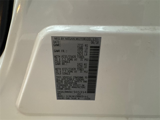 - VIN : 5N1DL0MN0KC505354