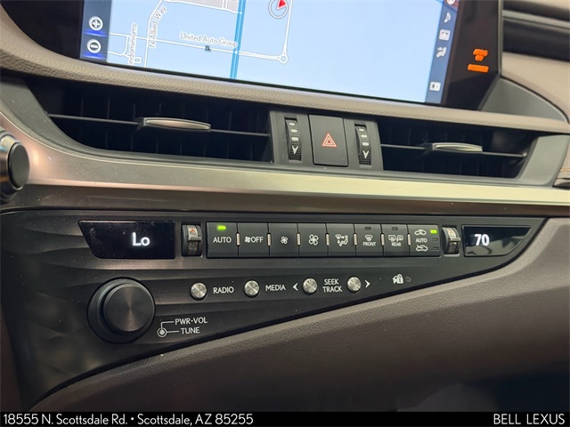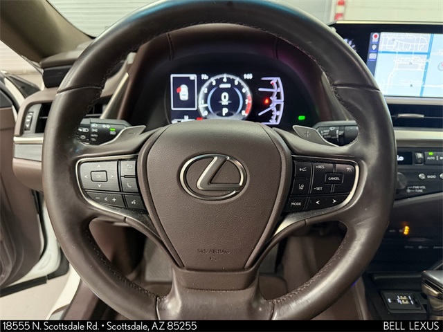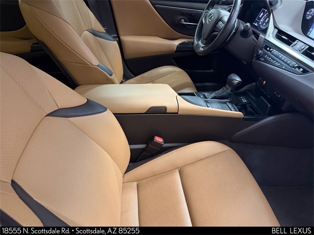 Arizona's Original and Largest Lexus Dealer, since 1989! ELITE OF LEXUS AWARD WINNER... for two decades. Bell Lexus is also the #1 Lexus dealer in the USA for Service Customer Satisfaction 6 out of the last 8 years. This Lexus ES is equipped with the following features: Premium Package (Driver Seat Memory, Heated & Ventilated Seats, NuLuxe Seat Trim (LD), Power Tilt/Telescoping Steering Wheel w/Memory, Rain Sensing Wipers, and Side Mirrors w/Memory & Reverse Tilt), Accessory Package 2 (Cargo Net, Carpet Trunk Mat, Key Gloves, and Rear Bumper Applique), Flaxen Nuluxe (Ld Artificial Leather, Navigation, 10 Speakers, 10-Way Power Adjustable Front Seats, 4-Wheel Disc Brakes, ABS brakes, Air Conditioning, AM/FM radio: SiriusXM, Auto High-beam Headlights, Auto-dimming door mirrors, Automatic temperature control, Blind Spot Monitor w/Park Assist, Brake assist, Bumpers: body-color, CD player, Compass, Delay-off headlights, Driver door bin, Driver vanity mirror, Dual front impact airbags, Dual front side impact airbags, Electrochromic Rear-View Mirror, Electronic Stability Control, Emergency communication system: Lexus Enform w/Safety Connect, Exterior Parking Camera Rear, Four wheel independent suspension, Front anti-roll bar, Front Bucket Seats, Front Center Armrest, Front dual zone A/C, Front reading lights, Fully automatic headlights, Garage door transmitter: HomeLink, Illuminated Door Sills, Illuminated entry, Intelligence Clearance Sonar, Knee airbag, Lane Change Assist, Leather Shift Knob, Leather steering wheel, Low tire pressure warning, NuLuxe Seat Trim, Occupant sensing airbag, Outside temperature display, Overhead airbag, Overhead console, Panic alarm, Panoramic Glass Roof, Passenger door bin, Passenger vanity mirror, Power door mirrors, Power driver seat, Power moonroof, Power passenger seat, Power steering, Power windows, Radio data system, Radio: Lexus Premium Sound System w/10 Speakers, Rear anti-roll bar, Rear reading lights, Rear seat center armrest, Rear side impact airbag, Rear window defroster, Remote keyless entry, Security system, Speed control, Speed-sensing steering, Steering wheel mounted audio controls, Tachometer, Telescoping steering wheel, Tilt steering wheel, Traction control, Trip computer, Turn signal indicator mirrors, Variably intermittent wipers, Wheels: 18" x 8J Split 10-Spoke High Gloss, and Wood Trim.