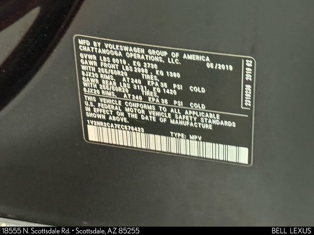 Arizona's Original and Largest Lexus Dealer, since 1989! ELITE OF LEXUS AWARD WINNER... for two decades. Bell Lexus is also the #1 Lexus dealer in the USA for Service Customer Satisfaction 6 out of the last 8 years. This Volkswagen Atlas is equipped with the following features: 12 Speakers, 3.60 Axle Ratio, 3rd row seats: split-bench, 4-Wheel Disc Brakes, ABS brakes, Active Blind Spot Monitor, Air Conditioning, AM/FM radio: SiriusXM, Auto High-beam Headlights, Auto-dimming Rear-View mirror, Automatic temperature control, Brake assist, Bumpers: body-color, Compass, Delay-off headlights, Driver door bin, Driver vanity mirror, Dual front impact airbags, Dual front side impact airbags, Electronic Stability Control, Emergency communication system: VW Car-Net services (capabilities require enrollment or subscription), Forward collision: FCW w/Autonomous Emergency Braking mitigation, Four wheel independent suspension, Front anti-roll bar, Front Bucket Seats, Front Center Armrest, Front dual zone A/C, Front fog lights, Front reading lights, Garage door transmitter: HomeLink, Heated door mirrors, Heated front seats, Heated rear seats, Heated steering wheel, Htd/Actively Ventilated Comfort Front Bucket Seats, Illuminated entry, Low tire pressure warning, Memory seat, Navigation System, Occupant sensing airbag, Outside temperature display, Overhead airbag, Overhead console, Panic alarm, Passenger door bin, Passenger vanity mirror, Perforated Vienna Leather Seating Surfaces, Power door mirrors, Power driver seat, Power Liftgate, Power moonroof, Power passenger seat, Power steering, Power windows, Radio data system, Radio: Discover Media 8.0" Touchscreen w/Nav, Rain sensing wipers, Rear air conditioning, Rear anti-roll bar, Rear audio controls, Rear reading lights, Rear seat center armrest, Rear window defroster, Rear window wiper, Remote CD player, Remote keyless entry, Roof rack: rails only, Security system, Speed control, Speed-sensing steering, Split folding rear seat, Spoiler, Standard Suspension, Steering wheel mounted audio controls, Tachometer, Telescoping steering wheel, Tilt steering wheel, Traction control, Trip computer, Turn signal indicator mirrors, Variably intermittent wipers, Ventilated front seats, and Wheels: 20" Silver Triple 5-Spoke Alloy.