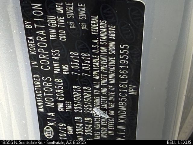 Arizona's Original and Largest Lexus Dealer, since 1989! ELITE OF LEXUS AWARD WINNER... for two decades. Bell Lexus is also the #1 Lexus dealer in the USA for Service Customer Satisfaction 6 out of the last 8 years. This Kia Sedona is equipped with the following features: 18" x 7.0J Alloy Wheels, 2-Way Power Driver Lumbar Support, 3.51 Axle Ratio, 3rd row seats: split-bench, 4-Way Adjustable Passenger's Seat, 4-Wheel Disc Brakes, 6 Speakers, 8-Way Power-Adjustable Driver's Seat, ABS brakes, Air Conditioning, AM/FM radio: SiriusXM, Apple CarPlay & Android Auto, Automatic temperature control, Brake assist, Bumpers: body-color, Carpeted Floor Mats, Compass, Delay-off headlights, Driver door bin, Driver vanity mirror, Dual front impact airbags, Dual front side impact airbags, Electronic Stability Control, Emergency communication system, Exterior Parking Camera Rear, Four wheel independent suspension, Front anti-roll bar, Front Bucket Seats, Front Center Armrest, Front dual zone A/C, Front reading lights, Fully automatic headlights, Heated Front Captain Seats, Heated front seats, Illuminated entry, Leather Seat Trim, Leather Shift Knob, Leather steering wheel, Low tire pressure warning, Occupant sensing airbag, Outside temperature display, Overhead airbag, Overhead console, Panic alarm, Passenger door bin, Passenger vanity mirror, Power door mirrors, Power driver seat, Power steering, Power windows, Radio: AM/FM/MP3 Audio System, Rear air conditioning, Rear anti-roll bar, Rear reading lights, Rear window defroster, Rear window wiper, Reclining 3rd row seat, Remote keyless entry, Security system, Speed control, Speed-sensing steering, Split folding rear seat, Spoiler, Steering wheel mounted audio controls, Tachometer, Telescoping steering wheel, Tilt steering wheel, Traction control, Trip computer, Turn signal indicator mirrors, and Variably intermittent wipers.