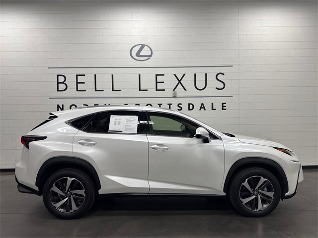 Arizona's Original and Largest Lexus Dealer, since 1989! ELITE OF LEXUS AWARD WINNER... for two decades. Bell Lexus is also the #1 Lexus dealer in the USA for Service Customer Satisfaction 6 out of the last 8 years. This Lexus NX is equipped with the following features: Premium Package (Power Tilt & Slide Moonroof/Sunroof, Wheels: 18" x 7.5" 5-Spoke Alloy, Blind Spot Monitor w/Rear Cross Traffic Alert, Driver's Seat Memory, Electrochromic Heated Outside Mirrors, Heated & Ventilated Front Seats, and High Clearance Lamp), Navigation System, 4-Wheel Disc Brakes, 8 Speakers, ABS brakes, Air Conditioning, AM/FM radio: SiriusXM, Apple CarPlay/Android Auto, Auto High-beam Headlights, Automatic temperature control, Axle Ratio: 3.888, Brake assist, Bumpers: body-color, CD player, Compass, Delay-off headlights, Driver door bin, Driver vanity mirror, Dual front impact airbags, Dual front side impact airbags, Electrochromic Rearview Mirror w/HomeLink, Electronic Stability Control, Emergency communication system: Lexus Enform Safety Connect, Exterior Parking Camera Rear, Four wheel independent suspension, Front anti-roll bar, Front Bucket Seats, Front Center Armrest, Front dual zone A/C, Front fog lights, Front reading lights, Fully automatic headlights, Heated door mirrors, Illuminated entry, Knee airbag, Leather Shift Knob, Leather steering wheel, Lexus Enform App Suite 2.0, Lexus Enform Destination Assist, Lexus Enform Remote, Lexus Enform Wi-Fi, Low tire pressure warning, NuLuxe Seat Trim, Occupant sensing airbag, Outside temperature display, Overhead airbag, Overhead console, Panic alarm, Passenger door bin, Passenger vanity mirror, Power door mirrors, Power driver seat, Power passenger seat, Power steering, Power windows, Radio data system, Radio: 10-Speaker Lexus Premium Sound System, Radio: 8-Speaker Lexus Premium Sound System, Rear anti-roll bar, Rear seat center armrest, Rear window defroster, Rear window wiper, Remote keyless entry, Roof rack: rails only, SD Navigation System, Security system, Speed control, Speed-sensing steering, Split folding rear seat, Spoiler, Steering wheel mounted audio controls, Tachometer, Telescoping steering wheel, Tilt steering wheel, Traction control, Trip computer, Turn signal indicator mirrors, and Variably intermittent wipers.
