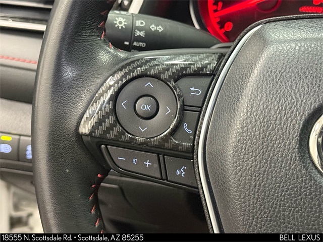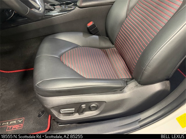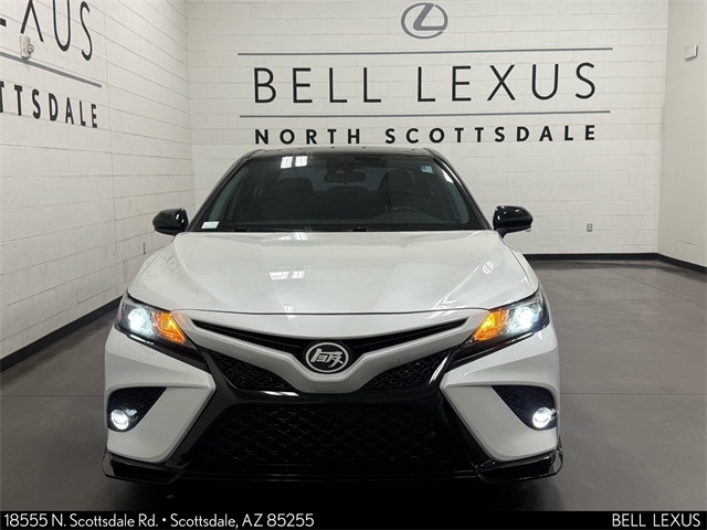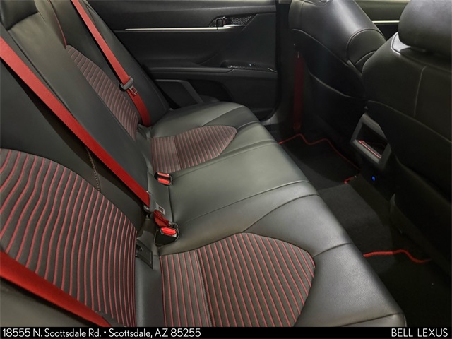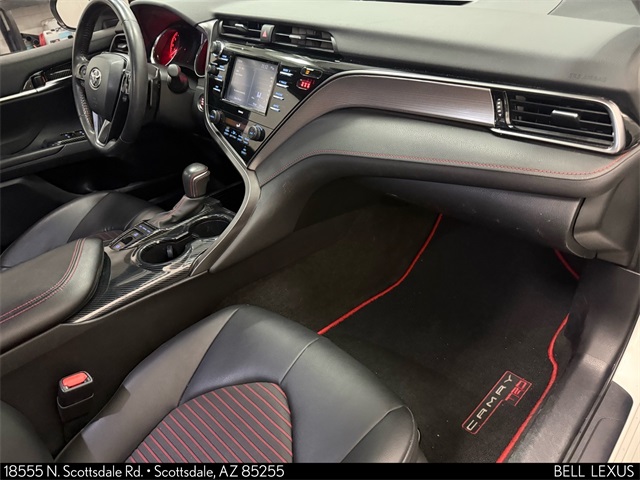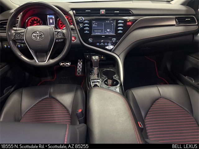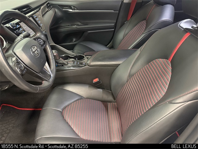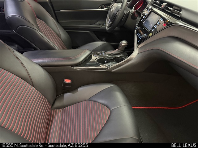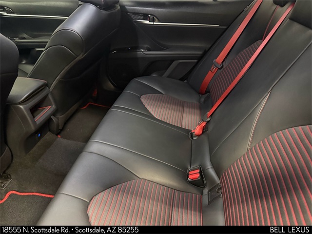 Arizona's Original and Largest Lexus Dealer, since 1989! ELITE OF LEXUS AWARD WINNER... for two decades. Bell Lexus is also the #1 Lexus dealer in the USA for Service Customer Satisfaction 6 out of the last 8 years. This Toyota Camry is equipped with the following features: Black/Red w/Fabric Seat Trim w/SofTex, 4-Wheel Disc Brakes, 6 Speakers, ABS brakes, Air Conditioning, Alloy wheels, AM/FM radio: SiriusXM, Apple CarPlay/Android Auto, Auto High-beam Headlights, Auto-dimming Rear-View mirror, Automatic temperature control, Brake assist, Bumpers: body-color, Compass, Delay-off headlights, Driver door bin, Driver vanity mirror, Dual front impact airbags, Dual front side impact airbags, Electronic Stability Control, Emergency communication system: Safety Connect with 1-year trial, Exterior Parking Camera Rear, Fabric Seat Trim w/SofTex, Four wheel independent suspension, Front anti-roll bar, Front Bucket Seats, Front Center Armrest, Front dual zone A/C, Front reading lights, Front Sport Bucket Seats, Fully automatic headlights, Heated door mirrors, Illuminated entry, Knee airbag, Leather Shift Knob, Low tire pressure warning, Occupant sensing airbag, Outside temperature display, Overhead airbag, Overhead console, Panic alarm, Passenger door bin, Passenger vanity mirror, Power door mirrors, Power driver seat, Power steering, Power windows, Radio data system, Radio: AM/FM Audio System, Rear anti-roll bar, Rear reading lights, Rear seat center armrest, Rear side impact airbag, Rear window defroster, Remote keyless entry, Security system, Speed control, Speed-sensing steering, Split folding rear seat, Spoiler, Sport steering wheel, Steering wheel mounted audio controls, Tachometer, Telescoping steering wheel, Tilt steering wheel, Traction control, TRD Bumper, TRD LED Low Headlamp, TRD Luggage Door, TRD Rear Spoiler, Trip computer, Turn signal indicator mirrors, Variably intermittent wipers, and Wheels: 8.5J x 19" TRD Matte Black Alloy.