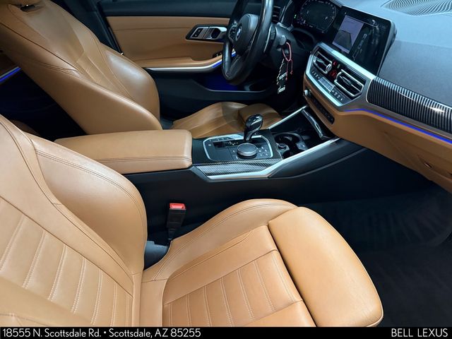 Arizona's Original and Largest Lexus Dealer, since 1989! ELITE OF LEXUS AWARD WINNER... for two decades. Bell Lexus is also the #1 Lexus dealer in the USA for Service Customer Satisfaction 6 out of the last 8 years. This BMW 3 Series is equipped with the following features: Connected Package Pro, Driving Assistance Package (Active Blind Spot Detection, Active Driving Assistant, Lane Departure Warning System, and Park Distance Control), Premium Package (Head-Up Display, Heated Front Seats, and Heated Steering Wheel), 10 Speakers, 4-Wheel Disc Brakes, ABS brakes, Air Conditioning, Alloy wheels, AM/FM radio: SiriusXM with 360L, Apple CarPlay & Android Auto Compatibility, Apple CarPlay Compatibility, Auto High-beam Headlights, Auto-dimming door mirrors, Auto-dimming Rear-View mirror, Automatic temperature control, BMW Assist eCall, BMW TeleServices, Brake assist, Bumpers: body-color, Compass, ConnectedDrive Services, Delay-off headlights, Driver door bin, Driver vanity mirror, Dual front impact airbags, Dual front side impact airbags, Electronic Stability Control, Emergency communication system: BMW Assist eCall, Exterior Parking Camera Rear, Four wheel independent suspension, Front anti-roll bar, Front Bucket Seats, Front Center Armrest, Front dual zone A/C, Front reading lights, Fully automatic headlights, Garage door transmitter, Hands-Free Bluetooth & USB Audio Connection, Heated door mirrors, Hi-Fi Sound System, Illuminated entry, Knee airbag, Leather Shift Knob, Leather steering wheel, Live Cockpit Pro w/Navi, Low tire pressure warning, Lumbar Support, Memory seat, Navigation System, Occupant sensing airbag, Outside temperature display, Overhead airbag, Panic alarm, Passenger door bin, Passenger vanity mirror, Power door mirrors, Power driver seat, Power Front Seats, Power moonroof, Power passenger seat, Power steering, Power windows, Radio Control US, Radio data system, Radio: AM/FM Audio System, Rain sensing wipers, Rear air conditioning, Rear anti-roll bar, Rear reading lights, Rear seat center armrest, Rear window defroster, Remote keyless entry, Security system, SensaTec Upholstery, SiriusXM w/360L, Speed control, Speed-sensing steering, Speed-Sensitive Wipers, Split folding rear seat, Spoiler, Sport Seats, Sport steering wheel, Steering wheel mounted audio controls, Tachometer, Telescoping steering wheel, Tilt steering wheel, Traction control, Trip computer, Turn signal indicator mirrors, Variably intermittent wipers, Wheels: 18" x 7.5" Fr & 18" x 8.5" Rr (Style 790M), and Wheels: 19" x 8" Fr & 19" x 8.5" Rr (Style 792M)