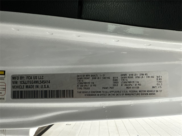 Bright White Clearcoat 2021 Jeep Gladiator Mojave 4WD 8-Speed Automatic 3.6L V6 24V VVT