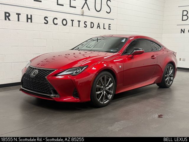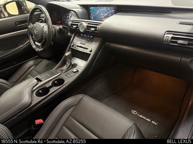 Arizona's Original and Largest Lexus Dealer, since 1989! ELITE OF LEXUS AWARD WINNER... for two decades. Bell Lexus is also the #1 Lexus dealer in the USA for Service Customer Satisfaction 6 out of the last 8 years. This Lexus RC is equipped with the following features: Navigation Package (Electrochromic Rearview Mirror w/HomeLink, Lexus Enform Destination Assist, and Lexus Enform Enform App Suite 2.0), Moonroof w/Power Tilt/Slide, 10 Speakers, 4-Wheel Disc Brakes, ABS brakes, Adaptive suspension, Air Conditioning, Alloy wheels, Aluminum Sport Pedals, AM/FM radio: SiriusXM, Apple CarPlay/Android Auto, Auto High-beam Headlights, Auto-dimming door mirrors, Auto-dimming Rear-View mirror, Automatic temperature control, Black Headliner, Brake assist, Bumpers: body-color, CD player, Compass, Delay-off headlights, Driver door bin, Driver vanity mirror, Dual front impact airbags, Dual front side impact airbags, DVD-Audio, Electrochromic Heated Outside Mirrors w/Memory, Electronic Stability Control, Emergency communication system: Enform Safety Connect (complimentary 3-year subscription), Exterior Parking Camera Rear, F SPORT NuLuxe Seat Trim, F SPORT Shift Knob, F SPORT Tuned Adaptive Variable Suspension (AVS), Four wheel independent suspension, Front anti-roll bar, Front Bucket Seats, Front Center Armrest, Front dual zone A/C, Front reading lights, Fully automatic headlights, Garage door transmitter: HomeLink, Glove Box w/Key, Heated door mirrors, Heated front seats, Heated/Ventilated Power F SPORT Front Seats, Illuminated entry, Knee airbag, Leather Shift Knob, Lexus Enform Wi-Fi, LFA Inspired Instrumentation, Low tire pressure warning, Memory seat, Occupant sensing airbag, Outside temperature display, Overhead airbag, Overhead console, Panic alarm, Passenger door bin, Passenger vanity mirror, Perforated Leather Steering Wheel, Power door mirrors, Power driver seat, Power passenger seat, Power steering, Power Tilt/Telescoping Steering Column, Power windows, Radio data system, Radio: AM/FM 1-Disc, Rain Sensing Auto Intermittent Wipers, Rain sensing wipers, Rear anti-roll bar, Rear reading lights, Rear window defroster, Remote keyless entry, Security system, Silver Performance Trim, Speed control, Speed-sensing steering, Speed-Sensitive Wipers, Split folding rear seat, Sport Vehicle Dynamics Integrated Mgmt (VDIM), Stainless Steel Door Sills, Steering wheel memory, Steering wheel mounted audio controls, Tachometer, Telescoping steering wheel, Tilt steering wheel, Traction control, Trip computer, Turn signal indicator mirrors, Variably intermittent wipers, Ventilated front seats, and Wheels: 19" Split-5-Spoke Alloy F SPORT.