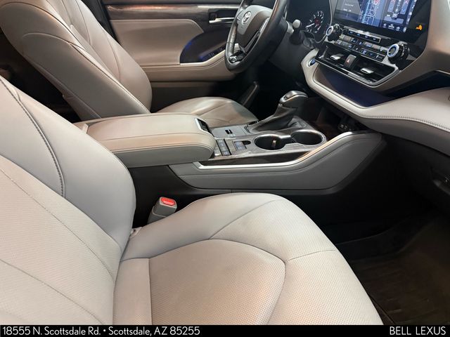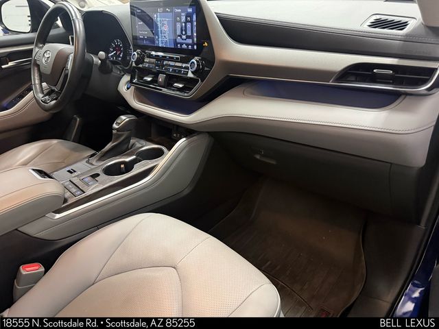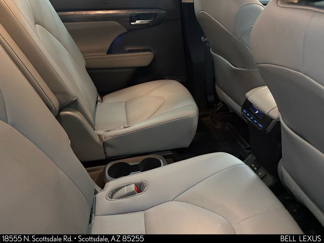 Arizona's Original and Largest Lexus Dealer, since 1989! ELITE OF LEXUS AWARD WINNER... for two decades. Bell Lexus is also the #1 Lexus dealer in the USA for Service Customer Satisfaction 6 out of the last 8 years. This Toyota Highlander is equipped with the following features: 12.3" Screen & Birds Eye View (Panoramic View Monitor and Radio: Premium Audio w/JBL Clari-Fi & 12.3" Screen), 11 Speakers, 20" Alloy Wheels, 3.003 Axle Ratio, 3rd row seats: split-bench, 4-Wheel Disc Brakes, ABS brakes, Air Conditioning, Alloy wheels, AM/FM radio: SiriusXM, Apple CarPlay/Android Auto, Auto High-beam Headlights, Auto-dimming Rear-View mirror, Automatic temperature control, Brake assist, Bumpers: body-color, Cargo Cross Bars (TMS), Carpet Floor Mats & Cargo Mat (TMS), Chrome wheels, Delay-off headlights, Driver door bin, Driver vanity mirror, Dual front impact airbags, Dual front side impact airbags, Electronic Stability Control, Emergency communication system: Safety Connect with 1-year trial, Exterior Parking Camera Rear, Four wheel independent suspension, Front anti-roll bar, Front Bucket Seats, Front Center Armrest, Front dual zone A/C, Front fog lights, Front reading lights, Fully automatic headlights, Garage door transmitter: HomeLink, Heated door mirrors, Heated front seats, Heated steering wheel, Heated/Ventilated Front Bucket Seats, Illuminated entry, Knee airbag, Leather Seat Trim, Leather Shift Knob, Low tire pressure warning, Memory seat, Navigation system: Dynamic Navigation (3-year trial), Occupant sensing airbag, Outside temperature display, Overhead airbag, Overhead console, Panic alarm, Passenger door bin, Passenger vanity mirror, Power door mirrors, Power driver seat, Power Liftgate, Power moonroof, Power passenger seat, Power steering, Power windows, Radio: Premium Audio w/JBL Clari-Fi, Rear air conditioning, Rear anti-roll bar, Rear reading lights, Rear window defroster, Rear window wiper, Reclining 3rd row seat, Remote keyless entry, Roof rack: rails only, Security system, Speed control, Speed-sensing steering, Split folding rear seat, Spoiler, Steering wheel mounted audio controls, Tachometer, Telescoping steering wheel, Tilt steering wheel, Tow Hitch Kit (TMS), Traction control, Trip computer, Turn signal indicator mirrors, Variably intermittent wipers, and Ventilated front seats.