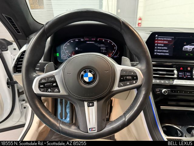 Arizona's Original and Largest Lexus Dealer, since 1989! ELITE OF LEXUS AWARD WINNER... for two decades. Bell Lexus is also the #1 Lexus dealer in the USA for Service Customer Satisfaction 6 out of the last 8 years. This BMW 8 Series is equipped with the following features: Comfort Seating Package (Front & Rear Heated Seats and Power Rear Sunshade & Rear Side Window Shades), Connected Package Pro, Driving Assistance Package (Active Blind Spot Detection, Active Driving Assistant, Active Park Distance Control, Drive Recorder, Parking Assistant Plus, Rear-View Camera, and Surround View w/3D View), Driving Assistance Professional Package (Active Driving Assistant Pro and Extended Traffic Jam Assistant), M Technology Package, Cooling & High Performance Tire Package (Extended Shadowline Trim and Wheels: 20" x 8" Fr & 20" x 9" Rr M V-Spoke (1N0)), 16 Speakers, 4-Wheel Disc Brakes, ABS brakes, Adaptive suspension, Air Conditioning, Alloy wheels, AM/FM radio: SiriusXM with 360L, Apple CarPlay & Android Auto Compatibility, Apple CarPlay Compatibility, Auto High-beam Headlights, Auto tilt-away steering wheel, Auto-dimming door mirrors, Auto-dimming Rear-View mirror, Automatic temperature control, BMW Assist eCall, BMW TeleServices, Bowers & Wilkins Diamond Surround Sound System (DISC), Brake assist, Bumpers: body-color, Carbon Fiber Trim, ConnectedDrive Services, Delay-off headlights, Door auto-latch, Driver door bin, Driver vanity mirror, Dual front impact airbags, Dual front side impact airbags, Electronic Stability Control, Emergency communication system: BMW Assist eCall, Extended Merino Leather Upholstery, Exterior Parking Camera Rear, Four wheel independent suspension, Front anti-roll bar, Front Bucket Seats, Front Center Armrest, Front dual zone A/C, Front reading lights, Front Ventilated Seats, Fully automatic headlights, Garage door transmitter, Glass Controls, harman/kardon Surround Sound System, harman/kardon Speakers, Heads-Up Display, Heated door mirrors, Heated front seats, Heated Front Seats w/Armrests & Steering Wheel, Heated steering wheel, Illuminated entry, Leather Shift Knob, Leather steering wheel, Live Cockpit Pro w/Navi, Low tire pressure warning, M Sport Brakes w/Black Calipers, Memory seat, Multi-Functional Seats, Navigation System, Occupant sensing airbag, Outside temperature display, Overhead airbag, Panic alarm, Passenger door bin, Passenger vanity mirror, Power door mirrors, Power driver seat, Power moonroof: Panorama, Power passenger seat, Power steering, Power windows, Radio data system, Radio: AM/FM Audio System, Rain sensing wipers, Rear air conditioning, Rear anti-roll bar, Rear dual zone A/C, Rear Window Blind, Rear window defroster, Remote keyless entry, Security system, SiriusXM w/360L, Speed control, Speed-sensing steering, Speed-Sensitive Wipers, Split folding rear seat, Sport steering wheel, Steering wheel memory, Steering wheel mounted audio controls, Tachometer, Telescoping steering wheel, Tilt steering wheel, Traction control, Trip computer, Turn signal indicator mirrors, Variably intermittent wipers, Ventilated front seats, Wheels: 20" x 8" Fr & 20" x 9" Rr M V-Spoke, WiFi Hotspot, and Wireless Charging.