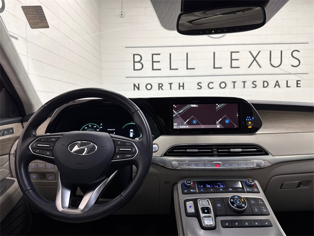 Arizona's Original and Largest Lexus Dealer, since 1989! ELITE OF LEXUS AWARD WINNER... for two decades. Bell Lexus is also the #1 Lexus dealer in the USA for Service Customer Satisfaction 6 out of the last 8 years. This Hyundai Palisade is equipped with the following features: Option Group 01, 12 Speakers, 3.648 Axle Ratio, 3rd row seats: split-bench, 4-Wheel Disc Brakes, ABS brakes, Air Conditioning, AM/FM radio: SiriusXM, Apple CarPlay & Android Auto, Auto High-beam Headlights, Auto-dimming Rear-View mirror, Auto-leveling suspension, Automatic temperature control, Brake assist, Bumpers: body-color, Cargo Net, Cargo Tray, Carpeted Floor Mats, Compass, Delay-off headlights, Driver door bin, Driver vanity mirror, Dual front impact airbags, Dual front side impact airbags, Electronic Stability Control, Emergency communication system: Blue Link Connected Car Service (3-year complimentary subscription), Four wheel independent suspension, Front anti-roll bar, Front Bucket Seats, Front Center Armrest, Front dual zone A/C, Front reading lights, Fully automatic headlights, Garage door transmitter: HomeLink, harman/kardon Speakers, Heads-Up Display, Heated & Ventilated Front Bucket Seats, Heated door mirrors, Heated front seats, Heated rear seats, Heated steering wheel, Illuminated entry, Knee airbag, Low tire pressure warning, Memory seat, Navigation System, Occupant sensing airbag, Outside temperature display, Overhead airbag, Overhead console, Panic alarm, Passenger door bin, Passenger vanity mirror, Power door mirrors, Power driver seat, Power Liftgate, Power moonroof, Power passenger seat, Power steering, Power windows, Premium Nappa Leather Seat Trim, Radio data system, Radio: AM/FM/MP3 Premium Audio System, Rain sensing wipers, Rear air conditioning, Rear anti-roll bar, Rear audio controls, Rear reading lights, Rear window defroster, Rear window wiper, Reclining 3rd row seat, Remote keyless entry, Security system, Speed control, Speed-sensing steering, Split folding rear seat, Spoiler, Steering wheel mounted audio controls, Tachometer, Telescoping steering wheel, Tilt steering wheel, Traction control, Trip computer, Turn signal indicator mirrors, Variably intermittent wipers, Ventilated front seats, Ventilated rear seats, and Wheels: 20" x 7.5J Calligraphy Exclusive Alloy.
