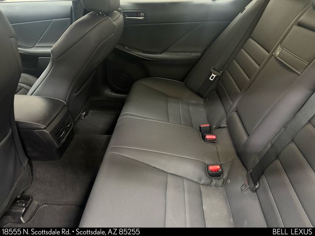Arizona's Original and Largest Lexus Dealer, since 1989! ELITE OF LEXUS AWARD WINNER... for two decades. Bell Lexus is also the #1 Lexus dealer in the USA for Service Customer Satisfaction 6 out of the last 8 years. This Lexus IS is equipped with the following features: Handling Package (Adaptive Variable Suspension, F SPORT Heated Ash Wood-Trim Steering Wheel, Smart Access Card Key, Ash Interior Trim, Carbon Fiber Rear Spoiler, and Drive Mode Select), Navigation Package w/Mark Levinson Audio, L/Certified Certified, AWD, Black w/Perforated NuLuxe Seat Trim, Mark Levinson Audio System, 10 Speakers, 19" Wheels, 4-Wheel Disc Brakes, ABS brakes, Air Conditioning, Alloy wheels, AM/FM radio: SiriusXM, Apple CarPlay/Android Auto, Auto High-beam Headlights, Auto-dimming door mirrors, Auto-dimming Rear-View mirror, Automatic temperature control, Brake assist, Bumpers: body-color, CD player, Compass, Delay-off headlights, Driver door bin, Driver vanity mirror, Dual front impact airbags, Dual front side impact airbags, Electronic Stability Control, Emergency communication system: Safety Connect (3-year trial), Exterior Parking Camera Rear, Four wheel independent suspension, Front anti-roll bar, Front Bucket Seats, Front Center Armrest, Front dual zone A/C, Front fog lights, Front reading lights, Fully automatic headlights, Garage door transmitter: HomeLink, Heated & Ventilated F SPORT Seats, Heated door mirrors, Heated front seats, Heated steering wheel, Illuminated entry, Knee airbag, Leather Shift Knob, Low tire pressure warning, Moonroof, Occupant sensing airbag, Outside temperature display, Overhead airbag, Overhead console, Panic alarm, Passenger door bin, Passenger vanity mirror, Perforated NuLuxe Seat Trim (EA), Power door mirrors, Power driver seat, Power passenger seat, Power steering, Power windows, Radio data system, Radio: Multimedia System w/8" Color Touchscreen, Rain sensing wipers, Rear anti-roll bar, Rear reading lights, Rear seat center armrest, Rear side impact airbag, Rear window defroster, Remote keyless entry, Security system, Speed control, Speed-sensing steering, Speed-Sensitive Wipers, Split folding rear seat, Spoiler, Sport steering wheel, Steering wheel mounted audio controls, Tachometer, Telescoping steering wheel, Tilt steering wheel, Traction control, Trip computer, Turn signal indicator mirrors, Variably intermittent wipers, and Ventilated front seats.