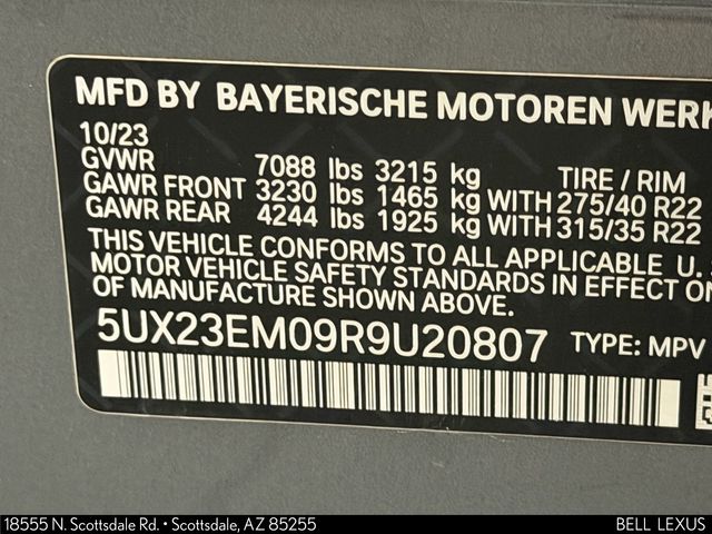 Arizona's Original and Largest Lexus Dealer, since 1989! ELITE OF LEXUS AWARD WINNER... for two decades. Bell Lexus is also the #1 Lexus dealer in the USA for Service Customer Satisfaction 6 out of the last 8 years. This BMW X7 is equipped with the following features: Climate Comfort Package (5-Zone Automatic Climate Control, Front & Rear Heated Seats, and Front Ventilated Seats), Connected Package Pro, M Sport Package (Aerodynamic Kit, Anthracite Alcantara Headliner, M Steering Wheel, Shadowline Exterior Trim, and Without Lines Designation Outside), M Sport Package (337), Parking Assistance Package (Drive Recorder, Parking Assistant Professional, and Surround View w/3D View), Premium Package (harman/kardon Surround Sound System, Gesture Control, Rear Electric Side Window Shades, and Soft-Close Automatic Doors), 10 Speakers, 2nd Row Captain's Chairs, 3.64 Axle Ratio, 3rd row seats: split-bench, 4-Wheel Disc Brakes, ABS brakes, Adaptive suspension, Air Conditioning, AM/FM radio: SiriusXM with 360L, AM/FM Stereo, Apple CarPlay & Android Auto Compatibility, Apple CarPlay Compatibility, Auto High-beam Headlights, Auto tilt-away steering wheel, Auto-dimming door mirrors, Auto-dimming Rear-View mirror, Auto-leveling suspension, Automatic temperature control, BMW Assist eCall, BMW TeleServices, Brake assist, Bumpers: body-color, Compass, ConnectedDrive Services, Delay-off headlights, Driver door bin, Driver vanity mirror, Dual front impact airbags, Dual front side impact airbags, Electronic Stability Control, Emergency communication system: BMW Assist eCall, Exterior Parking Camera Rear, Four wheel independent suspension, Front anti-roll bar, Front Bucket Seats, Front Center Armrest, Front dual zone A/C, Front reading lights, Fully automatic headlights, Garage door transmitter, Genuine wood console insert, Genuine wood dashboard insert, Genuine wood door panel insert, Head restraints memory, Heads-Up Display, Heated door mirrors, Heated front seats, Heated Multi-Contour Seats, Heated steering wheel, Hi-Fi Sound System, Illuminated entry, Increased Top Speed Limiter, Knee airbag, Leather steering wheel, Live Cockpit Pro, Low tire pressure warning, Memory seat, Navigation system: BMW Maps Navigation, Occupant sensing airbag, Outside temperature display, Overhead airbag, Panic alarm, Passenger door bin, Passenger vanity mirror, Personal eSIM 5G, Power adjustable front head restraints, Power door mirrors, Power driver seat, Power Front Seats, Power moonroof: Panorama, Power passenger seat, Power steering, Power windows, Radio data system, Rain sensing wipers, Rear air conditioning, Rear anti-roll bar, Rear dual zone A/C, Rear reading lights, Rear seat center armrest, Rear window defroster, Rear window wiper, Reclining 3rd row seat, Remote keyless entry, Security system, Sensafin Upholstery, SiriusXM w/360L & 1 Year Platinum Plan Subscription, Speed control, Speed-sensing steering, Speed-Sensitive Wipers, Split folding rear seat, Spoiler, Sport steering wheel, Steering wheel memory, Steering wheel mounted audio controls, Tachometer, Telescoping steering wheel, Tilt steering wheel, Traction control, Trip computer, Turn signal indicator mirrors, Variably intermittent wipers, Wheels: 22" x 9.5" Fr & 22" x 10.5" Rr V-Spoke, and Wireless Charging Device.