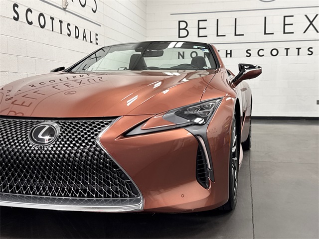 Arizona's Original and Largest Lexus Dealer, since 1989! ELITE OF LEXUS AWARD WINNER... for two decades. Bell Lexus is also the #1 Lexus dealer in the USA for Service Customer Satisfaction 6 out of the last 8 years. This Lexus LC is equipped with the following features: Cold Area Package (Heated Leather Steering Wheel), Touring Package (Radio: Mark Levinson 13-Spkr Prem Surround Sound, Seat Neck Heater, Semi-Aniline Perforated Leather Seat Surfaces, and Wheels: 21" Forged Alloy 10-Spoke), L/Certified Certified, 12 Speakers, 4-Wheel Disc Brakes, ABS brakes, Adaptive suspension, Air Conditioning, Alloy wheels, AM/FM radio: SiriusXM, Apple CarPlay/Android Auto, Auto High-beam Headlights, Auto tilt-away steering wheel, Auto-dimming door mirrors, Auto-dimming Rear-View mirror, Automatic temperature control, Brake assist, Bumpers: body-color, Compass, Convertible roof lining, Convertible roof wind blocker, Delay-off headlights, Driver door bin, Driver vanity mirror, Dual front impact airbags, Dual front side impact airbags, Electronic Stability Control, Emergency communication system: Safety Connect (3-year trial), Exterior Parking Camera Rear, Four wheel independent suspension, Front anti-roll bar, Front Bucket Seats, Front Center Armrest, Front dual zone A/C, Front reading lights, Garage door transmitter: HomeLink, Glass rear window, Heated front seats, Heated Sport Front Bucket Seats, Illuminated entry, Integrated roll-over protection, Knee airbag, Leather Perforated Seat Surfaces, Leather Shift Knob, Leather steering wheel, Low tire pressure warning, Memory seat, Navigation System, Occupant sensing airbag, Outside temperature display, Panic alarm, Passenger door bin, Passenger vanity mirror, Power adjustable front head restraints, Power convertible roof, Power door mirrors, Power driver seat, Power passenger seat, Power steering, Power windows, Radio data system, Radio: AM/FM w/Navigation System, Rain sensing wipers, Rear anti-roll bar, Rear window defroster, Remote keyless entry, Security system, Speed control, Speed-sensing steering, Speed-Sensitive Wipers, Steering wheel memory, Steering wheel mounted audio controls, Tachometer, Telescoping steering wheel, Tilt steering wheel, Traction control, Trip computer, Turn signal indicator mirrors, Variably intermittent wipers, Ventilated front seats, and Wheels: 21" Forged Alloy.