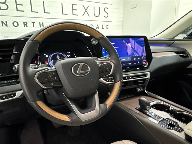 Arizona's Original and Largest Lexus Dealer, since 1989! ELITE OF LEXUS AWARD WINNER... for two decades. Bell Lexus is also the #1 Lexus dealer in the USA for Service Customer Satisfaction 6 out of the last 8 years. This Lexus RX is equipped with the following features: Cold Area Package, Convenience Package (Electrochromic Heated Outside Rearview Mirror and Lane Change Assist w/Lane Keeping Assist System), Premium Plus Package, Technology Package (Normal Head Up Display), L/Certified Certified, Macadamia w/Ash Bamboo w/Leather Seat Trim, Wheels: 21" 20-Spoke Alloy, 12 Speakers, 3.33 Axle Ratio, 4-Wheel Disc Brakes, 8-Way Power Driver & Front Passenger Seat Adjusters, ABS brakes, Air Conditioning, AM/FM radio: SiriusXM, Anti-whiplash front head restraints, Auto High-beam Headlights, Auto tilt-away steering wheel, Auto-dimming door mirrors, Auto-dimming Rear-View mirror, Automatic temperature control, Brake assist, Bumpers: body-color, Carpet Cargo Mat, Compass, Cross Bars, Dashcam, Delay-off headlights, Driver door bin, Driver vanity mirror, Dual front impact airbags, Dual front side impact airbags, Electronic Stability Control, Emergency communication system: Safety Connect (10-year trial), Exterior Parking Camera Rear, Four wheel independent suspension, Front anti-roll bar, Front Bucket Seats, Front Center Armrest, Front dual zone A/C, Front fog lights, Front reading lights, Fully automatic headlights, Garage door transmitter: HomeLink, Genuine wood console insert, Heated & Ventilated Front Bucket Seats, Heated door mirrors, Heated front seats, Heated steering wheel, Illuminated Cargo Sills, Illuminated Door Sills, Illuminated entry, Leather Seat Trim, Leather Shift Knob, Leather steering wheel, Low tire pressure warning, Memory seat, Navigation System, Occupant sensing airbag, Outside temperature display, Overhead airbag, Overhead console, Panic alarm, Passenger door bin, Passenger vanity mirror, Power door mirrors, Power driver seat, Power Liftgate, Power moonroof, Power passenger seat, Power Rear Door w/Kick Sensor, Power steering, Power windows, Radio data system, Radio: Lexus Interface w/14" HD Touchscreen Display, Rain sensing wipers, Rear air conditioning, Rear anti-roll bar, Rear Bumper Applique, Rear reading lights, Rear seat center armrest, Rear side impact airbag, Rear window defroster, Rear window wiper, Remote keyless entry, Security system, Side Puddle Lamp, Speed control, Speed-sensing steering, Split folding rear seat, Spoiler, Steering wheel memory, Steering wheel mounted audio controls, Tachometer, Telescoping steering wheel, Tilt steering wheel, Traction control, Trip computer, Turn signal indicator mirrors, Variably intermittent wipers, Ventilated front seats, and Wireless Apple CarPlay/Wireless Android Auto.