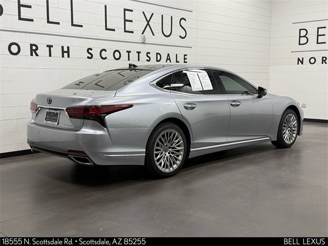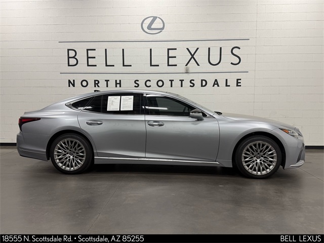 Arizona's Original and Largest Lexus Dealer, since 1989! ELITE OF LEXUS AWARD WINNER... for two decades. Bell Lexus is also the #1 Lexus dealer in the USA for Service Customer Satisfaction 6 out of the last 8 years. This Lexus LS is equipped with the following features: Interior Upgrade Package (Heated Rear Seats, Leather-Wrapped Htd Steering Wheel w/Premium Wood, Power Front Seatbelt Buckles, Semi-Aniline Leather Seat Trim (LG), Semi-Aniline Leather-Trimmed Door Armrests, Ultrasuede-Trimmed Headliner & Sun Visors, Upgraded Heated & Ventilated Front Bucket Seats, and Wood & Semi-Aniline Leather-Trimmed Center Console), Lexus Safety System+ A Package (Enhanced All-Speed Dynamic Radar Cruise Control, Front Cross-Traffic Alert w/Intersection Support, Lane Change Assist, Lane Keeping Assist System, Pre-Collision System w/Pedestrian Alert, and Traffic Jam Assist), L/Certified Certified, Chateau w/Semi-Aniline Leather Seat Trim, Navigation System, Panorama Glass Roof, Wheels: 20" Split-20-Spoke Alloy, 12 Speakers, 4-Wheel Disc Brakes, ABS brakes, Active Cruise Control, Adaptive suspension, Air Conditioning, Alloy wheels, AM/FM radio: SiriusXM, Apple CarPlay/Android Auto, Auto High-beam Headlights, Auto tilt-away steering wheel, Auto-dimming door mirrors, Auto-dimming Rear-View mirror, Automatic temperature control, Brake assist, Bumpers: body-color, CD player, Compass, Delay-off headlights, Driver door bin, Driver vanity mirror, Dual front impact airbags, Dual front side impact airbags, DVD-Audio, Electronic Stability Control, Emergency communication system: Safety Connect (10-year trial), Exterior Parking Camera Rear, Four wheel independent suspension, Front anti-roll bar, Front Bucket Seats, Front Center Armrest, Front dual zone A/C, Front reading lights, Fully automatic headlights, Garage door transmitter: HomeLink, Genuine wood console insert, Genuine wood door panel insert, Head restraints memory, Heads-Up Display, Heated & Ventilated Front Bucket Seats, Heated door mirrors, Heated front seats, Heated steering wheel, Illuminated entry, Knee airbag, Leather Shift Knob, Leather steering wheel, Lexus Premium Audio System, Low tire pressure warning, Memory seat, Occupant sensing airbag, Outside temperature display, Overhead airbag, Overhead console, Panic alarm, Passenger door bin, Passenger vanity mirror, Power adjustable front head restraints, Power door mirrors, Power driver seat, Power passenger seat, Power steering, Power windows, Radio data system, Rain sensing wipers, Rear anti-roll bar, Rear reading lights, Rear seat center armrest, Rear side impact airbag, Rear Window Blind, Rear window defroster, Remote keyless entry, Security system, Speed control, Speed-sensing steering, Speed-Sensitive Wipers, Sport Leather Seat Trim, Steering wheel memory, Steering wheel mounted audio controls, Tachometer, Telescoping steering wheel, Tilt steering wheel, Traction control, Trip computer, Turn signal indicator mirrors, Variably intermittent wipers, and Ventilated front seats.