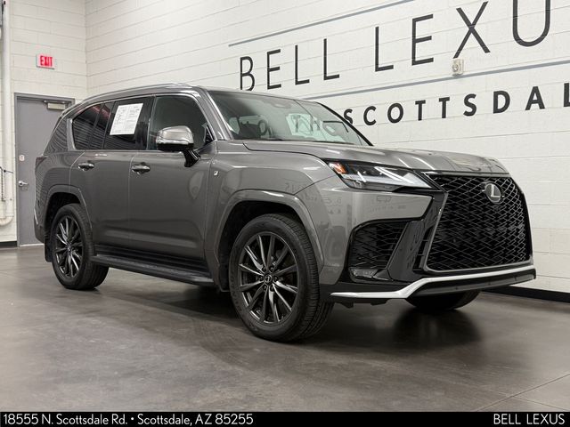 Arizona's Original and Largest Lexus Dealer, since 1989! ELITE OF LEXUS AWARD WINNER... for two decades. Bell Lexus is also the #1 Lexus dealer in the USA for Service Customer Satisfaction 6 out of the last 8 years. This Lexus LX is equipped with the following features: F SPORT Package, L/Certified Certified, Black w/Black Open Pore w/Semi-Aniline Leather Seat Trim, Mark Levinson 25-Speaker Premium Surround Sound, 3rd row seats: split-bench, 4-Wheel Disc Brakes, ABS brakes, Adaptive suspension, Air Conditioning, Alloy wheels, AM/FM radio: SiriusXM, Apple CarPlay/Android Auto, Auto High-beam Headlights, Auto tilt-away steering wheel, Auto-dimming door mirrors, Auto-dimming Rear-View mirror, Auto-leveling suspension, Automatic temperature control, Brake assist, Bumpers: body-color, Compass, Delay-off headlights, Driver door bin, Driver vanity mirror, Dual front impact airbags, Dual front side impact airbags, Electronic Stability Control, Emergency communication system: Safety Connect (up to 10-year trial subscription included), Exterior Parking Camera Rear, Front anti-roll bar, Front Bucket Seats, Front Center Armrest, Front dual zone A/C, Front fog lights, Front reading lights, Front wheel independent suspension, Fully automatic headlights, Garage door transmitter: HomeLink, Headlight cleaning, Heads-Up Display, Heated and Ventilated Front Bucket Seats, Heated door mirrors, Heated front seats, Heated rear seats, Heated steering wheel, Illuminated entry, Leather Shift Knob, Leather steering wheel, Low tire pressure warning, Memory seat, Navigation System, Occupant sensing airbag, Outside temperature display, Overhead airbag, Overhead console, Panic alarm, Passenger door bin, Passenger vanity mirror, Power door mirrors, Power driver seat, Power Liftgate, Power moonroof, Power passenger seat, Power steering, Power windows, Radio data system, Radio: Lexus Interface, Rain sensing wipers, Rear air conditioning, Rear anti-roll bar, Rear dual zone A/C, Rear reading lights, Rear seat center armrest, Rear side impact airbag, Rear window defroster, Rear window wiper, Reclining 3rd row seat, Remote keyless entry, Security system, Semi-Aniline Leather Seat Trim, Speed control, Speed-sensing steering, Split folding rear seat, Spoiler, Steering wheel memory, Steering wheel mounted audio controls, Tachometer, Telescoping steering wheel, Tilt steering wheel, Traction control, Trip computer, Turn signal indicator mirrors, Variably intermittent wipers, Ventilated front seats, Ventilated rear seats, Voltmeter, and Wheels: 22" Forged F SPORT with Dark Gray Metallic Finish.