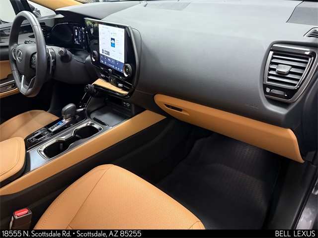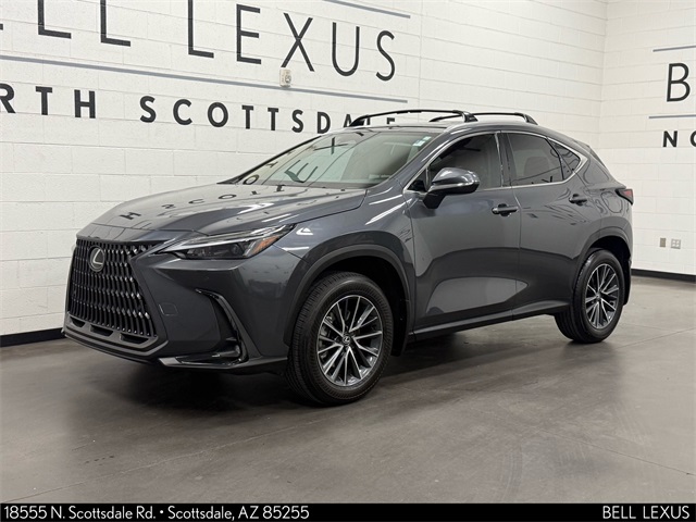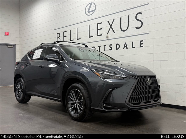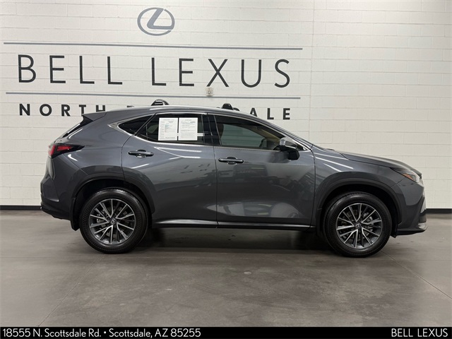 Arizona's Original and Largest Lexus Dealer, since 1989! ELITE OF LEXUS AWARD WINNER... for two decades. Bell Lexus is also the #1 Lexus dealer in the USA for Service Customer Satisfaction 6 out of the last 8 years. This Lexus NX is equipped with the following features: L/Certified Certified, 10 Speakers, 4-Wheel Disc Brakes, ABS brakes, Air Conditioning, Alloy wheels, AM/FM radio: SiriusXM, Auto High-beam Headlights, Auto-dimming door mirrors, Auto-dimming Rear-View mirror, Automatic temperature control, Brake assist, Bumpers: body-color, Delay-off headlights, Driver door bin, Driver vanity mirror, Dual front impact airbags, Dual front side impact airbags, Electronic Stability Control, Emergency communication system: Safety Connect (up to 10-year trial subscription included), Exterior Parking Camera Rear, Four wheel independent suspension, Front anti-roll bar, Front Bucket Seats, Front Center Armrest, Front dual zone A/C, Front fog lights, Front reading lights, Fully automatic headlights, Garage door transmitter: HomeLink, Heated door mirrors, Heated Front Bucket Seats, Heated front seats, Illuminated entry, Knee airbag, Leather Shift Knob, Leather steering wheel, Low tire pressure warning, Navigation system: Drive Connect Cloud Navigation (subscription required), NuLuxe Seat Trim, Occupant sensing airbag, Outside temperature display, Overhead airbag, Overhead console, Panic alarm, Passenger door bin, Passenger vanity mirror, Power door mirrors, Power driver seat, Power Liftgate, Power passenger seat, Power steering, Power windows, Radio data system, Radio: 10-Speaker Lexus Premium Sound, Rain sensing wipers, Rear anti-roll bar, Rear reading lights, Rear seat center armrest, Rear window defroster, Rear window wiper, Remote keyless entry, Security system, Speed control, Speed-sensing steering, Speed-Sensitive Wipers, Split folding rear seat, Spoiler, Steering wheel mounted audio controls, Tachometer, Telescoping steering wheel, Tilt steering wheel, Traction control, Trip computer, Turn signal indicator mirrors, Variably intermittent wipers, Wheels: 18" Alloy w/Dark Gray Met & Machined Finish, and Wireless Apple CarPlay/Wireless Android Auto.