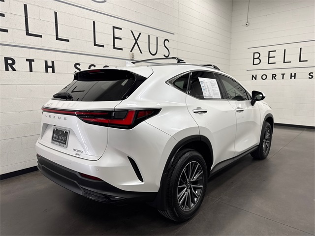 Arizona's Original and Largest Lexus Dealer, since 1989! ELITE OF LEXUS AWARD WINNER... for two decades. Bell Lexus is also the #1 Lexus dealer in the USA for Service Customer Satisfaction 6 out of the last 8 years. This Lexus NX is equipped with the following features: Premium Package, L/Certified Certified, 10 Speakers, 4-Wheel Disc Brakes, ABS brakes, Air Conditioning, Alloy wheels, AM/FM radio: SiriusXM, Auto High-beam Headlights, Auto tilt-away steering wheel, Auto-dimming door mirrors, Auto-dimming Rear-View mirror, Automatic temperature control, Brake assist, Bumpers: body-color, Delay-off headlights, Driver door bin, Driver vanity mirror, Dual front impact airbags, Dual front side impact airbags, Electronic Stability Control, Emergency communication system: Safety Connect (up to 10-year trial subscription included), Exterior Parking Camera Rear, Four wheel independent suspension, Front anti-roll bar, Front Bucket Seats, Front Center Armrest, Front dual zone A/C, Front fog lights, Front reading lights, Fully automatic headlights, Garage door transmitter: HomeLink, Heated & Ventilated Front Bucket Seats, Heated door mirrors, Heated front seats, Illuminated entry, Knee airbag, Leather Shift Knob, Leather steering wheel, Low tire pressure warning, Memory seat, Navigation system: Drive Connect Cloud Navigation (subscription required), NuLuxe Seat Trim, Occupant sensing airbag, Outside temperature display, Overhead airbag, Overhead console, Panic alarm, Passenger door bin, Passenger vanity mirror, Power door mirrors, Power driver seat, Power Liftgate, Power moonroof, Power passenger seat, Power steering, Power windows, Radio data system, Radio: 10-Speaker Lexus Premium Sound, Rain sensing wipers, Rear anti-roll bar, Rear reading lights, Rear seat center armrest, Rear window defroster, Rear window wiper, Remote keyless entry, Security system, Speed control, Speed-sensing steering, Speed-Sensitive Wipers, Split folding rear seat, Spoiler, Steering wheel memory, Steering wheel mounted audio controls, Tachometer, Telescoping steering wheel, Tilt steering wheel, Traction control, Trip computer, Turn signal indicator mirrors, Variably intermittent wipers, Ventilated front seats, Wheels: 18" Alloy w/Dark Gray Met & Machined Finish, and Wireless Apple CarPlay/Wireless Android Auto.