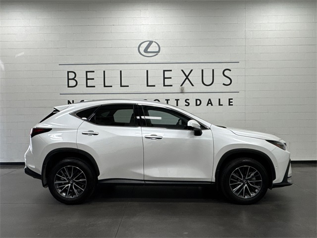 Arizona's Original and Largest Lexus Dealer, since 1989! ELITE OF LEXUS AWARD WINNER... for two decades. Bell Lexus is also the #1 Lexus dealer in the USA for Service Customer Satisfaction 6 out of the last 8 years. This Lexus NX is equipped with the following features: Accessory Package (Z1) (Cargo Net, Carpet Cargo Mat, and Key Gloves), Cold Area Package (Heated Leather Steering Wheel w/Paddle and Windshield Wiper De-Icer), Front Cross-Traffic Alert (Lane Change Assist), Luxury Package, Panoramic View Monitor (Back Monitor and Outside Heated Mirrors w/Blind Spot Monitor), Towing Package (2000 lbs), 2.5L I4 DOHC 16V, 14" Display Navigation, Wheels: 20" Alloy w/Silver Finish, 10 Speakers, 4-Wheel Disc Brakes, ABS brakes, Advanced Park w/Remote Park, Air Conditioning, AM/FM radio: SiriusXM, Auto High-beam Headlights, Auto tilt-away steering wheel, Auto-dimming door mirrors, Auto-dimming Rear-View mirror, Automatic temperature control, Brake assist, Bumpers: body-color, Dashcam, Delay-off headlights, Digital Key & SmartAccess Card Key, Driver door bin, Driver vanity mirror, Dual front impact airbags, Dual front side impact airbags, Electronic Stability Control, Emergency communication system: Safety Connect (up to 10-year trial subscription included), Exterior Parking Camera Rear, Four wheel independent suspension, Front anti-roll bar, Front Bucket Seats, Front Center Armrest, Front dual zone A/C, Front fog lights, Front reading lights, Fully automatic headlights, Garage door transmitter: HomeLink, Genuine wood door panel insert, Heads-Up Display, Heated & Ventilated Front Bucket Seats, Heated door mirrors, Heated front seats, Illuminated entry, Knee airbag, Leather Seat Trim, Leather Shift Knob, Leather steering wheel, Low tire pressure warning, Mark Levinson, Memory seat, Mudguards, Navigation system: Drive Connect Cloud Navigation (3-year trial subscription included), Occupant sensing airbag, Outside temperature display, Overhead airbag, Overhead console, Panic alarm, Panoramic Slide Moonroof/Sunroof, Passenger door bin, Passenger vanity mirror, Power door mirrors, Power driver seat, Power Liftgate, Power moonroof, Power passenger seat, Power steering, Power windows, Radio data system, Radio: 10-Speaker Lexus Premium Sound, Rain sensing wipers, Rear anti-roll bar, Rear reading lights, Rear seat center armrest, Rear window defroster, Rear window wiper, Remote keyless entry, Security system, Speed control, Speed-sensing steering, Speed-Sensitive Wipers, Split folding rear seat, Spoiler, Steering wheel memory, Steering wheel mounted audio controls, Tachometer, Telescoping steering wheel, Tilt steering wheel, Traction control, Trip computer, Turn signal indicator mirrors, Variably intermittent wipers, Ventilated front seats, Wireless Apple CarPlay/Wireless Android Auto, and Wireless Phone Charger.