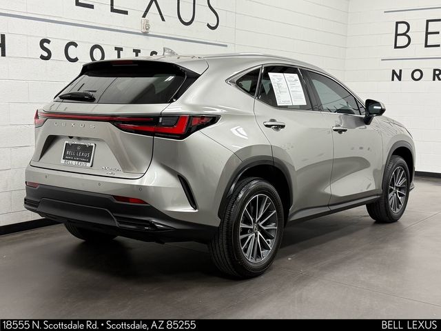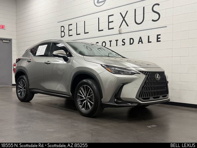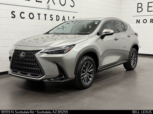 Arizona's Original and Largest Lexus Dealer, since 1989! ELITE OF LEXUS AWARD WINNER... for two decades. Bell Lexus is also the #1 Lexus dealer in the USA for Service Customer Satisfaction 6 out of the last 8 years. This Lexus NX is equipped with the following features: Front Cross-Traffic Alert (Lane Change Assist), Panoramic View Monitor (Back Monitor and Outside Heated Mirrors w/Blind Spot Monitor), Premium Package, L/Certified Certified, 2.5L I4 DOHC 16V, 10 Speakers, 4-Wheel Disc Brakes, ABS brakes, Air Conditioning, AM/FM radio: SiriusXM, Auto High-beam Headlights, Auto tilt-away steering wheel, Auto-dimming door mirrors, Auto-dimming Rear-View mirror, Automatic temperature control, Brake assist, Bumpers: body-color, Delay-off headlights, Driver door bin, Driver vanity mirror, Dual front impact airbags, Dual front side impact airbags, Electronic Stability Control, Emergency communication system: Safety Connect (up to 10-year trial subscription included), Exterior Parking Camera Rear, Four wheel independent suspension, Front anti-roll bar, Front Bucket Seats, Front Center Armrest, Front dual zone A/C, Front fog lights, Front reading lights, Fully automatic headlights, Garage door transmitter: HomeLink, Heated & Ventilated Front Bucket Seats, Heated door mirrors, Heated front seats, Illuminated entry, Knee airbag, Leather Shift Knob, Leather steering wheel, Low tire pressure warning, Memory seat, Navigation system: Drive Connect Cloud Navigation (subscription required), NuLuxe Seat Trim, Occupant sensing airbag, Outside temperature display, Overhead airbag, Overhead console, Panic alarm, Passenger door bin, Passenger vanity mirror, Power door mirrors, Power driver seat, Power Liftgate, Power moonroof, Power passenger seat, Power steering, Power windows, Radio data system, Radio: 10-Speaker Lexus Premium Sound, Rain sensing wipers, Rear anti-roll bar, Rear reading lights, Rear seat center armrest, Rear window defroster, Rear window wiper, Remote keyless entry, Security system, Speed control, Speed-sensing steering, Speed-Sensitive Wipers, Split folding rear seat, Spoiler, Steering wheel memory, Steering wheel mounted audio controls, Tachometer, Telescoping steering wheel, Tilt steering wheel, Traction control, Trip computer, Turn signal indicator mirrors, Variably intermittent wipers, Ventilated front seats, Wheels: 18" Dark Gray Met. & Machined Finish Alloy, and Wireless Apple CarPlay/Wireless Android Auto.