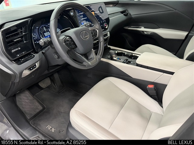 Arizona's Original and Largest Lexus Dealer, since 1989! ELITE OF LEXUS AWARD WINNER... for two decades. Bell Lexus is also the #1 Lexus dealer in the USA for Service Customer Satisfaction 6 out of the last 8 years. This Lexus RX is equipped with the following features: Convenience Package (Electrochromic Heated Outside Rearview Mirror and Lane Change Assist w/Lane Keeping Assist System), Premium Package, L/Certified Certified, Birch w/Black Open Pore w/NuLuxe Seat Trim, Wheels: 21" 20-Spoke Alloy w/Dark Gray Met Finish, 12 Speakers, 4-Wheel Disc Brakes, 8-Way Power Driver & Front Passenger Seat Adjusters, ABS brakes, Air Conditioning, AM/FM radio: SiriusXM, Anti-whiplash front head restraints, Auto High-beam Headlights, Auto tilt-away steering wheel, Auto-dimming door mirrors, Auto-dimming Rear-View mirror, Automatic temperature control, Brake assist, Bumpers: body-color, Compass, Delay-off headlights, Driver door bin, Driver vanity mirror, Dual front impact airbags, Dual front side impact airbags, Electronic Stability Control, Emergency communication system: Safety Connect (10-year trial), Exterior Parking Camera Rear, Four wheel independent suspension, Front anti-roll bar, Front Bucket Seats, Front Center Armrest, Front dual zone A/C, Front fog lights, Front reading lights, Fully automatic headlights, Garage door transmitter: HomeLink, Genuine wood console insert, Heated & Ventilated Front Bucket Seats, Heated door mirrors, Heated front seats, Heated steering wheel, Illuminated entry, Leather Shift Knob, Leather steering wheel, Low tire pressure warning, Memory seat, Navigation System, NuLuxe Seat Trim, Occupant sensing airbag, Outside temperature display, Overhead airbag, Overhead console, Panic alarm, Passenger door bin, Passenger vanity mirror, Power door mirrors, Power driver seat, Power Liftgate, Power moonroof, Power passenger seat, Power steering, Power windows, Radio data system, Radio: Lexus Interface w/14" HD Touchscreen Display, Radio: Lexus Interface w/9.8" HD Touchscreen Display, Rain sensing wipers, Rear air conditioning, Rear anti-roll bar, Rear reading lights, Rear seat center armrest, Rear side impact airbag, Rear window defroster, Rear window wiper, Remote keyless entry, Security system, Speed control, Speed-sensing steering, Split folding rear seat, Spoiler, Steering wheel memory, Steering wheel mounted audio controls, Tachometer, Telescoping steering wheel, Tilt steering wheel, Traction control, Trip computer, Turn signal indicator mirrors, Variably intermittent wipers, Ventilated front seats, and Wireless Apple CarPlay/Wireless Android Auto.