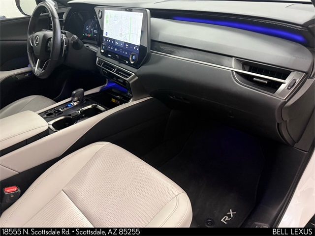 Arizona's Original and Largest Lexus Dealer, since 1989! ELITE OF LEXUS AWARD WINNER... for two decades. Bell Lexus is also the #1 Lexus dealer in the USA for Service Customer Satisfaction 6 out of the last 8 years. This Lexus RX is equipped with the following features: Convenience Package, Premium Plus Package, Technology Package, L/Certified Certified, 2.5L I4 DOHC 16V, AWD, Birch w/Black Open Pore w/Leather Seat Trim, 12 Speakers, 4-Wheel Disc Brakes, ABS brakes, Air Conditioning, AM/FM radio: SiriusXM, Anti-whiplash front head restraints, Auto High-beam Headlights, Auto tilt-away steering wheel, Auto-dimming door mirrors, Auto-dimming Rear-View mirror, Automatic temperature control, Brake assist, Bumpers: body-color, Carpet Cargo Mat, Compass, Cross Bars, Dashcam, Delay-off headlights, Driver door bin, Driver vanity mirror, Dual front impact airbags, Dual front side impact airbags, Electronic Stability Control, Emergency communication system: Safety Connect (10-year trial), Exterior Parking Camera Rear, Four wheel independent suspension, Front anti-roll bar, Front Bucket Seats, Front Center Armrest, Front dual zone A/C, Front fog lights, Front reading lights, Fully automatic headlights, Garage door transmitter: HomeLink, Heated & Ventilated Front Bucket Seats, Heated door mirrors, Heated front seats, Heated steering wheel, Illuminated Cargo Sills, Illuminated Door Sills, Illuminated entry, Leather Seat Trim, Leather Shift Knob, Leather steering wheel, Low tire pressure warning, Memory seat, Mudguards, Navigation System, Occupant sensing airbag, Outside temperature display, Overhead airbag, Overhead console, Panic alarm, Passenger door bin, Passenger vanity mirror, Power door mirrors, Power driver seat, Power Liftgate, Power moonroof, Power passenger seat, Power Rear Door w/Kick Sensor, Power steering, Power Tilt & Slide Moonroof/Sunroof, Power windows, Radio data system, Radio: Lexus Interface w/14" Touchscreen Display, Rain sensing wipers, Rear air conditioning, Rear anti-roll bar, Rear Bumper Applique, Rear reading lights, Rear seat center armrest, Rear side impact airbag, Rear window defroster, Rear window wiper, Remote keyless entry, Security system, Side Puddle Lamp, Speed control, Speed-sensing steering, Split folding rear seat, Spoiler, Steering wheel memory, Steering wheel mounted audio controls, Telescoping steering wheel, Tilt steering wheel, Traction control, Trip computer, Turn signal indicator mirrors, Variably intermittent wipers, Ventilated front seats, Wheels: 21" 20-Spoke Alloy, and Wireless Apple CarPlay/Wireless Android Auto.