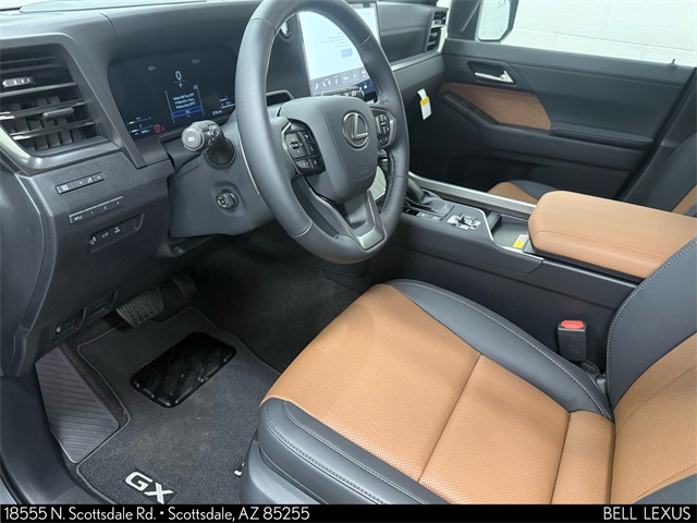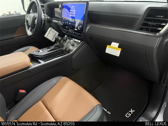 Arizona's Original and Largest Lexus Dealer, since 1989! ELITE OF LEXUS AWARD WINNER... for two decades. Bell Lexus is also the #1 Lexus dealer in the USA for Service Customer Satisfaction 6 out of the last 8 years. This Lexus GX is equipped with the following features: Premium Plus Package, L/Certified Certified, 2nd Row Bench Seat, Head-Up Display, 10 Speakers, 20" Wheels, 3rd row seats: split-bench, 4-Wheel Disc Brakes, ABS brakes, Air Conditioning, Alloy wheels, AM/FM radio, Anti-whiplash front head restraints, Apple CarPlay/Android Auto, Auto High-beam Headlights, Auto tilt-away steering wheel, Auto-dimming door mirrors, Auto-dimming Rear-View mirror, Automatic temperature control, Brake assist, Bumpers: body-color, Cross Bars, Delay-off headlights, Driver door bin, Driver vanity mirror, Dual front impact airbags, Dual front side impact airbags, Electronic Stability Control, Emergency communication system: Safety Connect (5-year minimum), Exterior Parking Camera Rear, Four wheel independent suspension, Front anti-roll bar, Front Bucket Seats, Front Center Armrest w/Storage, Front dual zone A/C, Front fog lights, Front reading lights, Fully automatic headlights, Garage door transmitter: HomeLink, Genuine wood console insert, Heated and Ventilated Front Bucket Seats, Heated door mirrors, Heated front seats, Heated rear seats, Illuminated entry, Knee airbag, Leather Shift Knob, Leather steering wheel, Lexus Interface with 14" Touchscreen Display, Low tire pressure warning, Memory seat, Navigation system: Drive Connect Cloud Navigation (3-year trial subscription included), NuLuxe Seat Trim, Occupant sensing airbag, Overhead airbag, Panic alarm, Passenger door bin, Passenger vanity mirror, Power door mirrors, Power driver seat, Power Liftgate, Power moonroof, Power passenger seat, Power steering, Power windows, Radio: 10-Speaker Lexus Premium Sound System, Rear air conditioning, Rear anti-roll bar, Rear reading lights, Rear seat center armrest, Rear side impact airbag, Rear window defroster, Rear window wiper, Remote keyless entry, Security system, Speed control, Speed-sensing steering, Split folding rear seat, Spoiler, Steering wheel memory, Steering wheel mounted audio controls, Tachometer, Telescoping steering wheel, Tilt steering wheel, Traction control, Trip computer, Turn signal indicator mirrors, Variably intermittent wipers, Ventilated front seats, and Wheels: 20" 6-Twin-Spoke Alloy with Black.