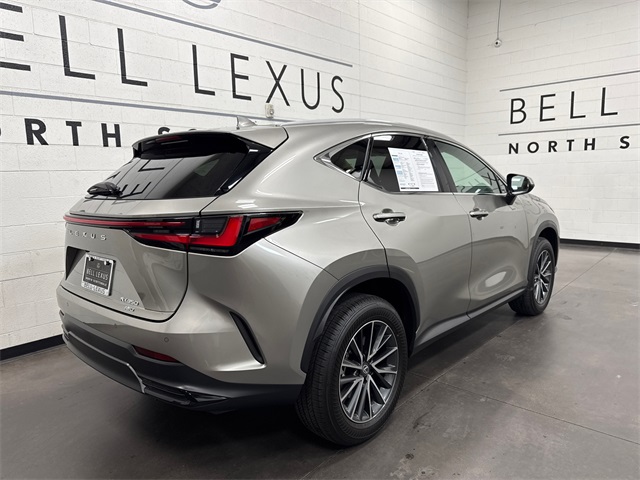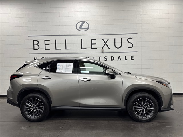 Arizona's Original and Largest Lexus Dealer, since 1989! ELITE OF LEXUS AWARD WINNER... for two decades. Bell Lexus is also the #1 Lexus dealer in the USA for Service Customer Satisfaction 6 out of the last 8 years. This Lexus NX is equipped with the following features: L/Certified Certified, 10 Speakers, 4-Wheel Disc Brakes, ABS brakes, Air Conditioning, Alloy wheels, AM/FM radio: SiriusXM, Auto High-beam Headlights, Auto tilt-away steering wheel, Auto-dimming door mirrors, Auto-dimming Rear-View mirror, Automatic temperature control, Brake assist, Bumpers: body-color, Delay-off headlights, Driver door bin, Driver vanity mirror, Dual front impact airbags, Dual front side impact airbags, Electronic Stability Control, Emergency communication system: Safety Connect (up to 10-year trial subscription included), Exterior Parking Camera Rear, Four wheel independent suspension, Front anti-roll bar, Front Bucket Seats, Front Center Armrest, Front dual zone A/C, Front fog lights, Front reading lights, Fully automatic headlights, Garage door transmitter: HomeLink, Heated & Ventilated Front Seats, Heated door mirrors, Heated front seats, Illuminated entry, Knee airbag, Leather Shift Knob, Leather steering wheel, Lexus Interface w/9.8" Touchscreen Display, Low tire pressure warning, Memory seat, Navigation system: Drive Connect Cloud Navigation (subscription required), NuLuxe Seat Trim, Occupant sensing airbag, Outside temperature display, Overhead airbag, Overhead console, Panic alarm, Passenger door bin, Passenger vanity mirror, Power door mirrors, Power driver seat, Power Liftgate, Power moonroof, Power passenger seat, Power steering, Power windows, Radio data system, Radio: 10-Speaker Lexus Premium Sound System, Rain sensing wipers, Rear anti-roll bar, Rear reading lights, Rear seat center armrest, Rear window defroster, Rear window wiper, Remote keyless entry, Security system, Speed control, Speed-sensing steering, Speed-Sensitive Wipers, Split folding rear seat, Spoiler, Steering wheel memory, Steering wheel mounted audio controls, Tachometer, Telescoping steering wheel, Tilt steering wheel, Traction control, Trip computer, Turn signal indicator mirrors, Variably intermittent wipers, Ventilated front seats, Wheels: 18" 15-Spoke Alloy, and Wireless Apple CarPlay/Wireless Android Auto.